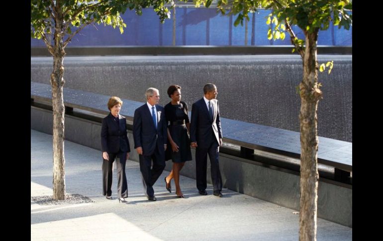 Internacional | El presidente es acompañado por su esposa y el ex mandatario George Bush Obama llega a la Zona Cero para ceremonia por 11-S El presidente es acompañado por su esposa y el ex mandatario George Bush Por: AFP 11 de septiembre de 2011 - 06:26 hs El mandatario visita el lugar donde se erigían las torres gemelas del World Trade Center. REUTERS / La década que cambió al mundo -Conmemoran atentados con máxima seguridad-El pánico por los ataques en Nueva York alcanzó a los tapatíos-Tranquila, la Zona Cero NUEVA YORK, ESTADOS UNIDOS (11/SEP/2011).- El presidente estadounidense Barack Obama llegó este domingo a Nueva York para participar en las ceremonias que marcan el décimo aniversario de los ataques terroristas del 11 de septiembre en Estados Unidos. Obama se trasladó a la Zona Cero, el lugar donde se erigían las torres gemelas del World Trade Center, para rendir homenaje a las casi tres mil personas que murieron en los ataques. Lo acompañaron su esposa, el ex mandatario George Bush, y la pareja de éste, Laura, quienes pasearon por el Monumento al WTC y saludaron a familiares de las víctimas mortales de 2001. El sábado, Obama advirtió que Estados Unidos no vacilará en su lucha contra el terrorismo. "Hace diez años, los estadounidenses comunes nos demostraron el verdadero significado del coraje, cuando corrieron por las escaleras de aquellos rascacielos, en medio de las llamas", recordó el presidente en su alocución semanal por radio e internet. "Como lo demostramos nuevamente este fin de semana, permanecemos vigilantes. Haremos todo cuanto esté en nuestro poder para proteger a nuestro pueblo", dijo. "Una década después del 11/9, está claro para todo el mundo que los terroristas que nos atacaron en esa mañana de septiembre no tuvieron éxito por el carácter de nuestro pueblo, la resistencia de nuestra nación y la resistencia de nuestros valores", afirmó Obama. Temas Norte América Estados Unidos 11 de Septiembre Barack Obama Lee También Revelan llamada al 911 con que se reportó la muerte de Diane Keaton SMN advierte lluvias y bajas temperaturas en México esta semana Organismo internacional prevé tensión comercial a nivel global en 2026 Raymond toca tierra como ciclón post-tropical Recibe las últimas noticias en tu e-mail Todo lo que necesitas saber para comenzar tu día Registrarse implica aceptar los Términos y Condiciones