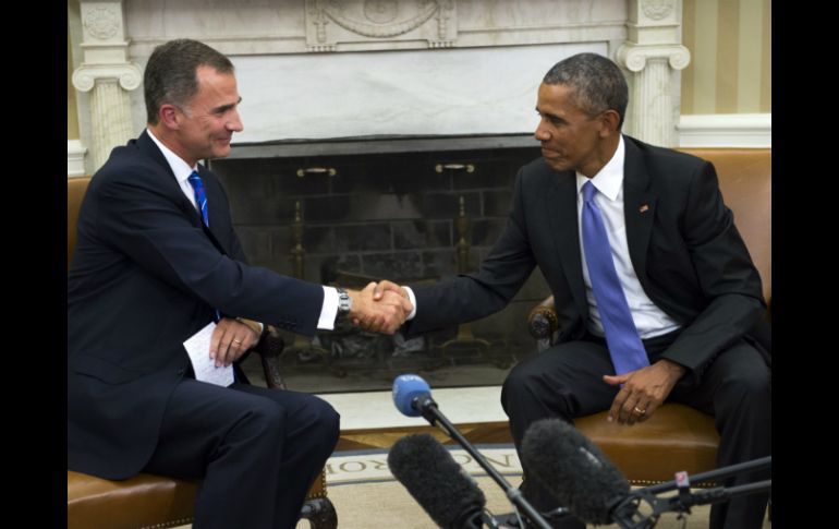 Internacional | Se reunión con el rey Felipe VI de España para discutir sobre esta problemática Obama pide cooperación internacional sobre refugiados sirios El presidente estadounidense se reunió con el rey Felipe VI de España para discutir sobre esta problemática Por: AP 15 de septiembre de 2015 - 17:20 hs El rey Felupe VI de España y Barack Obama en su reunión de este martes. EFE / S. Thew WASHINGTON, ESTADOS UNIDOS (15/SEP/2015).- El presidente estadounidense aprovechó una reunión el martes en Washington con el rey Felipe VI de España para llamar a la cooperación internacional ante la crisis de refugiados sirios. Obama se reunió con el monarca por la tarde en la Casa Blanca y los dos discutieron la importancia de trabajar juntos para garantizar que los refugiados están seguros y son tratados con "humanidad compartida". Obama dijo que la cooperación debe extenderse a la fuente de la crisis de refugiados y resolver los problemas en Siria. El presidente dijo que es importante además que Estados Unidos acoja a su porción de refugiados sirios. El rey Felipe dijo que inició la jornada del martes visitando Mount Vernon para honrar al primer presidente del país, George Washington, pero también para reflexionar sobre la larga historia compartida de los dos países. Temas Norte América Estados Unidos Barack Obama Siria Felipe VI Refugiados Recibe las últimas noticias en tu e-mail Todo lo que necesitas saber para comenzar tu día Registrarse implica aceptar los Términos y Condiciones