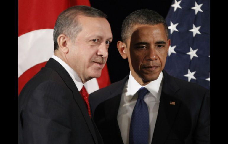 Internacional | Discuten el peligro de los extremistas extranjeros en Siria Obama telefonea a Erdogan para tratar crisis de Siria y Egipto Discuten el peligro de los extremistas extranjeros en Siria Por: EFE 7 de agosto de 2013 - 21:59 hs Recep Tayyip Erdogan (i) y Barack Obama (d) acuerdan coordinación para promover intereses bilaterales. ARCHIVO / WASHINGTON, ESTADOS UNIDOS (07/AGO/2013).- El presidente de Estados Unidos, Barack Obama, telefoneó hoy al primer ministro turco, Recep Tayyip Erdogan, para tratar los últimos acontecimientos ocurridos en Siria y Egipto, informó la Casa Blanca en un comunicado. A petición de Erdogan, Obama llamó al primer ministro turco desde California, donde se encontraba visitando a algunas tropas estadounidenses, y discutieron sobre "el peligro de los extremistas extranjeros en Siria". Ambos "coincidieron en la importancia de apoyar a la oposición siria unificada e inclusiva", apunta el comunicado. Obama y Erdogan expresaron su preocupación por la situación en Egipto y reafirmaron su compromiso compartido para "apoyar de manera democrática e incluyente" al país. "Los dos líderes acordaron que sus equipos se sigan coordinando estrechamente para promover nuestros intereses comunes. El presidente (Obama) expresó sus mejores deseos al primer ministro y al pueblo turco en el comienzo de sus vacaciones Ramadán", finaliza la nota. El Ejército egipcio depuso el pasado 3 de julio al hasta entonces presidente Mohamed Mursi, el primer mandatario elegido democráticamente desde el fin de la dictadura de Hosni Mubarak. El presidente interino egipcio, Adli Mansur, designó al político liberal y premio Nobel de la Paz Mohamed el Baradei primer ministro del país para que dirija la nueva transición marcada por el Ejército. Por otra parte, Obama, anunció hoy la decisión de entregar 195 millones de dólares en ayuda humanitaria adicional a Siria en alimentos, equipamiento médico y otros suministros, así como a los campos de refugiados en países cercanos. Cerca de 41 millones, principalmente en alimentos, serán distribuidos entre los cerca de 245.000 refugiados sirios en diversos campamentos de Egipto, Jordania, Líbano, Turquía e Iraq. Además de la ayuda humanitaria, Washington indicó a finales de julio que está avanzando en su objetivo de proporcionar armas a la oposición siria, después de que el Congreso diese su aprobación tras vencer las reservas iniciales al respecto. Se espera que esa ayuda incluya armamento pequeño, municiones y posiblemente también armas antitanque, aunque el gobierno estadounidense no ofrecido más detalles al respecto. Al menos 93 mil personas han muerto en Siria desde el inicio del conflicto en marzo de 2011, según datos de Naciones Unidas, aunque el Observatorio Sirio de Derechos Humanos ha elevado ya la cifra a más de cien mil. Temas Norte América Turquía Estados Unidos Egipto Barack Obama Siria Lee También Asesinan a maestra en Guerrero presuntamente por una calificación Llega "Melissa" al Atlántico; esta es la trayectoria de la tormenta A punto de aparecer el ciclón "Melissa"; a esta distancia está de México Tormenta tropical podría formarse en este punto del Pacífico mexicano Recibe las últimas noticias en tu e-mail Todo lo que necesitas saber para comenzar tu día Registrarse implica aceptar los Términos y Condiciones
