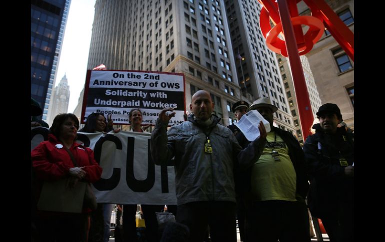 Internacional | Inició el 17 de septiembre de 2011 cuando activistas ocuparon el centro financiero ''Ocupa Wall Street'' celebra su segundo aniversario El movimiento tiene planeada una marcha que partirá del edificio de la ONU en Nueva York con rumbo a las oficinas del JP Morgan Chase, el mayor banco en Estados Unidos Por: NTX 17 de septiembre de 2013 - 11:47 hs Activistas de ''Ocupa Wall Street'' vuelven a la plaza Zuccotti, en el corazón del centro financiero de Nueva York. AFP / NUEVA YORK, ESTADOS UNIDOS (17/SEP/2013).- El movimiento social contra la desigualdad en el ingreso Ocupa Wall Street celebra aquí su segundo aniversario con varias actividades, entre las que destaca su demanda de gravar transacciones financieras con el impuesto conocido como Robin Hood. El movimiento tiene para ello planeada una marcha que partirá del edificio de la ONU en Nueva York con rumbo a las oficinas del JP Morgan Chase, el mayor banco en Estados Unidos, con el fin de exigir tasar con 0.5 por ciento las ganancias derivadas de transacciones financieras. De acuerdo con el sitio de promotores del llamado impuesto Robin Hood, los simpatizantes de Ocupa Wall Street, así como activistas comunitarios y líderes sociales, marcharán para exigir el fin de la austeridad en el gasto del gobierno y el financiamiento pleno a las necesidades básicas de la gente. "¿La respuesta sobre cómo pagaremos por ello? El impuesto Robin Hood. Un pequeño gravamen a Wall Street y sus contrapartes en el mundo es el antídoto para el innecesario sufrimiento causado por la austeridad", de acuerdo con la página del movimiento. Otras de sus actividades incluyen una marcha en solidaridad con los trabajadores de la industria de la comida rápida, y una movilización en contra de la Alianza Trans-Pacífico por la manera en que se infiltra el dinero a la política. Asimismo, mostrarán durante una reunión en un plaza cercana a Wall Street su solidaridad con el movimiento de los maestros en huelga en México, en que participarán representantes del movimiento neo-zapatista de este país. Iniciado el 17 de septiembre de 2011 luego de que un puñado de activistas ocuparan la plaza Zuccotti, en el corazón del centro financiero de Nueva York, Ocupa Wall Street se convirtió en un movimiento con repercusión global contra la ambición del capitalismo. A dos años de existencia, el movimiento ha perdido presencia aunque su vigor es mostrado en acciones específicas, como cuando asisten a personas desalojadas de sus viviendas. Asimismo, la ayuda de personas asociadas a Ocupa Wall Street a las víctimas del huracán Sandy de 2012 fue caracterizada como más efectiva que la de la Cruz Roja en algunas zonas de Nueva York. Temas Estados Unidos Manifestaciones en el mundo Wall Street Lee También México y Estados Unidos refuerzan cooperación en seguridad fronteriza Lemus respalda a productores de maíz y reconoce su reclamo 'por un precio justo' ¿Tormenta "Sonia" afectará a Jalisco en los próximos días? EN VIVO: Maiceros bloquean carretera Guadalajara-Morelia Recibe las últimas noticias en tu e-mail Todo lo que necesitas saber para comenzar tu día Registrarse implica aceptar los Términos y Condiciones