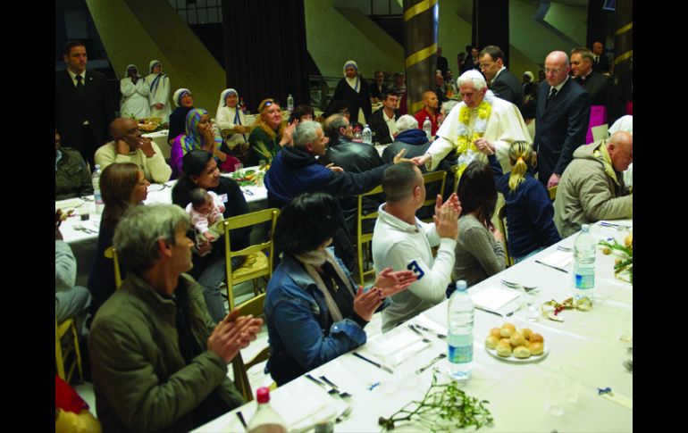 Internacional | Participaron 180 monjas de las Misioneras de la Caridad Ofrece el Papa almuerzo de Navidad a 350 indigentes en El Vaticano En esta invitación por el Papa, también participaron 180 monjas de las Misioneras de la Caridad un musulmán y un chino Por: NTX 26 de diciembre de 2010 - 09:37 hs En la sala abundaron mas de 500 personas alrededor del Papa. AFP / CIUDAD DEL VATICANO (26/DIC/2010).- El Papa Benedicto XVI abrió hoy el atrio del auditorio más grande del Vaticano, el Aula Pablo VI, para ofrecer un almuerzo navideño a 350 indigentes de Roma asistidos por las religiosas de Madre Teresa de Calcuta. En la comida participaron 180 monjas de las Misioneras de la Caridad, las cuales actualmente atienden unas 10 casas para pobres en la capital italiana. Entre los sin techo almorzaron con el Papa un musulmán y un chino. En esa galería el líder católico suele ofrecer almuerzos a personalidades de diverso tipo, por ejemplo a cardenales y obispos de diversas partes del mundo con motivo de reuniones como la asamblea del Sínodo. "El clima fue estrechamente sereno y compuesto. El Papa llegó poco antes de la una y fue recibido por un pequeño grupo de huéspedes de varias comunidades de hermanas de Madre Teresa, que estaban vestidos en forma del nacimiento", dijo Federico Lombardi. El director de la sala de prensa del Vaticano explicó que algunos de los indigentes se disfrazaron de José y María con un niño además de los Reyes Magos. Ellos recibieron a Joseph Ratzinger y le ofrecieron regalos. Abundó que en la sala más de 500 personas estaban sentadas en torno a cuatro filas de mesas; el pontífice se sentó en una mesa central acompañado por 14 indigentes, a su lado estuvieron un hombre proveniente de Suiza y una mujer italiana. "Hubo mucha alegría y también mucha tranquilidad: se veía que los invitados sentían que estaban en un ambiente un poco distinto de lo común y por tanto eran muy respetuosos, pero también muy contentos. Saludaron al Papa con un aplauso", apuntó. Al finalizar el almuerzo Benedicto XVI dirigió unas palabras a los presentes a quienes les pidió recordar que Dios les ama, que les tiene en cuenta y que tengan confianza en él porque Jesús nació también para ellos. "¡Queridos amigos! Sabed que el Papa les quiere, les lleva en el corazón, les recoge a todos en un abrazo paterno y reza por ustedes. Gracias por haber querido compartir la alegría de estos días de fiesta", dijo. Temas Ciudad del Vaticano Papa Benedicto Lee También t.A.T.u anuncia concierto en México: precio de boletos y cuándo salen a la venta Lluvias en CDMX: Pronóstico de lluvia hoy, 9 de octubre, a esta hora Dr. Simi llega al Vaticano; le entregan peluche al Papa León XIV Clima en Ciudad de México hoy: el pronóstico para el jueves 9 de octubre de 2025 Recibe las últimas noticias en tu e-mail Todo lo que necesitas saber para comenzar tu día Registrarse implica aceptar los Términos y Condiciones