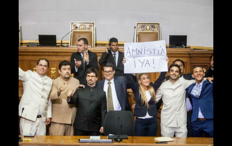 Internacional | La convocatoria de un referendo revocatorio de mandato presidencial, entre las opciones Opositores intentarán adelantar la salida de Nicolás Maduro El nuevo presidente del Parlamento sentencia que los legisladores de mayoría antichavista usarán la 'vía constitucional' Por: EL INFORMADOR 6 de enero de 2016 - 01:27 hs Lilian Tintori, esposa del opositor encarcelado Leopoldo López, sostiene un cartel durante la instalación de la Asamblea Nacional. / CARACAS, VENEZUELA (06/ENE/2016).- La oposición venezolana asumió ayer el control del Parlamento con un llamado a “cambiar” el Gobierno del presidente Nicolás Maduro, sumido en una profunda crisis política y económica, e incluso lograr una salida anticipada del presidente “por vía constitucional”. “Aquí hoy las cosas cambian”, sentenció ayer en su discurso el veterano diputado y acérrimo antichavista Henry Ramos Allup, nuevo presidente del Parlamento, durante la ceremonia que terminó con casi 17 años de hegemonía chavista en el Congreso. La administración de Maduro expira en 2019. Ramos Allup afirmó que en seis meses el nuevo Legislativo decidirá la “salida constitucional, democrática, pacífica y electoral para la cesación de este Gobierno”. Las opciones para ello, recordó, serían la convocatoria de un referendo revocatorio del mandato presidencial —que puede activarse cuando Maduro cumpla en julio la mitad de su gestión—, la enmienda constitucional, la renuncia voluntaria del gobernante o el establecimiento de una Asamblea Constituyente. El nuevo presidente del Legislativo, uno de los más acérrimos opositores a Maduro, recalcó que los diputados no tienen entre sus atribuciones aprobar el balance anual de la gestión presidencial, pero advirtió de que sí pueden censurar la de los ministros e instó a los diputados a pedirles cuentas. Ramos Allup recalcó que la aprobación de una ley de amnistía para los opositores presos será también un compromiso “no transable” de la recién estrenada cámara. En vilo El nuevo Parlamento de mayoría opositora, arrancó con la incógnita de si la oposición controlará finalmente los dos tercios de la cámara (112 diputados), lo que le permitiría acometer más fácilmente esos y otros cambios de calado en el país. Aunque la oposición consiguió 112 diputados en las elecciones del pasado 6 de diciembre, el Tribunal Supremo de Justicia ordenó suspender la proclamación de los cuatro diputados elegidos por el Estado Amazonas (tres opositores y un chavista) tras un recurso del chavismo por un supuesto fraude electoral. Temas América Latina Venezuela Nicolás Maduro Política internacional Lee También ¿Dónde ver EN VIVO el partido de J13 Cruz Azul vs América? Trump asegura que Maduro le ofreció 'de todo' para evitar conflictos con EU Zonas del EOU donde aún hay boletos para el Cruz Azul vs América Raymundo Riva Palacio: El asesinato que no quieren investigar Recibe las últimas noticias en tu e-mail Todo lo que necesitas saber para comenzar tu día Registrarse implica aceptar los Términos y Condiciones