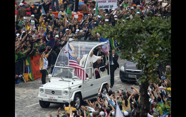 Internacional | Realiza una misa en la playa de Copacabana ante unos tres millones de jóvenes Papa Francisco clausura la JMJ de Río Ante unos tres millones de jóvenes, el Papa Francisco realiza este domingo una misa en la playa de Copacabana para clausurar la JMJ de Río Por: EFE 28 de julio de 2013 - 07:00 hs El Papa Francisco saluda a su llegada a la playa de Copacabana de Río. EFE / RÍO DE JANEIRO, BRASIL (28/JUL/2013).- El Papa Francisco llegó a la playa de Copacabana para oficiar la misa de clausura de XXVIII Jornada Mundial de la Juventud, a la que asisten unos tres millones de jóvenes de todo el mundo y tras la cual anunciará la ciudad que acogerá el próximo encuentro mundial de la juventud católica. A la misa asiste la presidenta de Brasil, Dilma Russeff, y está prevista la asistencia de los jefes de Estado de Argentina (Cristina Fernández), Bolivia (Evo Morales) y Surinam (Desire Bouterse), según informó el portavoz vaticano, Federico Lombardi. Al termino de la misa, Francisco los saludará brevemente, según precisó Lombardi, que subrayó que será un sencillo saludo y que no se abordarán temas de Estado. Concelebran con el papa 60 cardenales, mil 500 obispos y 11 mil sacerdotes. Durante el ofertorio, el papa acogerá a una niña muy pequeña que nació si cerebro y que aún vive, cuando normalmente estos niños fallecen casi inmediatamente. El portavoz vaticano, Federico Lombardi, informó que los padres de la niña la llevaron a la misa que ayer ofició Francisco en la catedral de Río de Janeiro y la presentaron al Papa y éste pidió que hoy fuera llevada en el ofertorio, como señal de la ofrenda a Dios de la vida. Al final de la misa, el Papa entregará a cinco pareja de jóvenes, representantes de los cinco continentes, una pequeña reproducción del Cristo Redentor, símbolo de Río de Janeiro, y un libro de plegarias. El pontífice llegó a Copacabana en el papamóvil, en el que recorrió todo el paseo marítimo, de cuatro kilómetros de largo. Al igual que los pasados días, decenas de miles de jóvenes le acompañaron durante el recorrido, corriendo por la arena y el paseo marítimo. Francisco se detuvo en numerosas ocasiones, para saludar a los presentes, besar niños e incluso tomó mate que le ofrecieron unos jóvenes argentinos. Esta misa, al igual que la vigilia de anoche, sábado, iba a celebrarse en Guaratiba, a las afueras de la ciudad, pero debido a las lluvias caídas en los últimos días en Río de Janeiro, convirtieron el lugar en un lodazal y se decidió cambiar por Copacabana. En la playa de Copacabana se celebró la ceremonia de bienvenida oficial al Papa, el pasado jueves, el Vía Crucis del viernes y la v vigilia de ayer, sábado. Hoy Copacabana es el Campus Fidei, campo de la fe, de la JMJ, nombre que se había dado al recinto de Guaratiba. Temas América Latina Brasil Iglesia Católica Papa Francisco Lee También Chivas viaja con ‘Chicharito’ y Robinho al amistoso ante América en Estados Unidos Estas son las bajas de Chivas para el próximo Clásico Nacional Chivas y América calientan en redes el Clásico Nacional de la Fecha FIFA Dr. Simi llega al Vaticano; le entregan peluche al Papa León XIV Recibe las últimas noticias en tu e-mail Todo lo que necesitas saber para comenzar tu día Registrarse implica aceptar los Términos y Condiciones