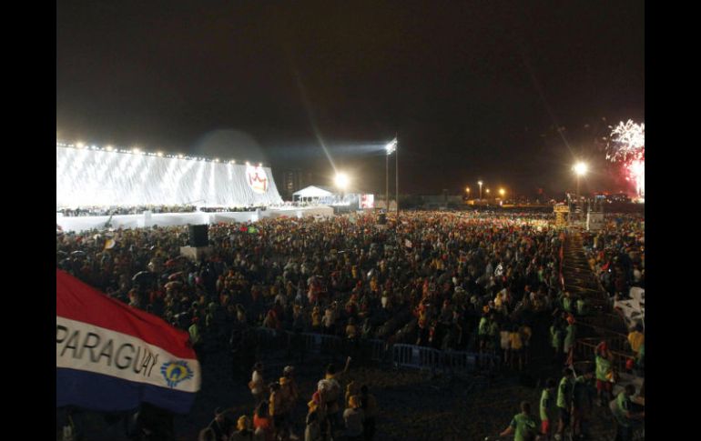 Internacional | Comienza una de las actividades más fuertes de la Jornada Mundial de la Juventud Papa preside vigilia ante más de un millón de personas Como parte de las actividades de la Jornada Mundial de la Juventud, Benedicto XVI preside una vigilia de oración en el aeródromo de Cuatro Vientos Por: NTX 20 de agosto de 2011 - 14:20 hs MADRID, ESPAÑA (20/AGO/2011).- El Papa Benedicto XVI llegó al aeródromo de Cuatro Vientos, en Madrid, para presidir una vigilia de oración junto a más de un millón de personas, como parte de las actividades de la Jornada Mundial de la Juventud (JMJ). Poco después de las 20:45 horas locales (18:45 GMT), el pontífice llegó hasta la base aérea a bordo de un auto cerrado y fue recibido por una multitud que cantaba, gritaba, aplaudía y agitaba banderas y estandartes. La muchedumbre superó todas las previsiones, ya que poco antes de la llegada del Papa todo el perímetro estaba lleno y fueron cerrados los accesos, ya desde la tarde de este sábado todos los controles de orden y seguridad se vieron desbordados. A la llegada del pontífice el coro y la orquesta de la JMJ, junto al Orfeón y la Escalonía, interpretaron la versión internacional del himno de la jornada "Firmes en la fe", y ante un escenario gigante ondearon las banderas de decenas de países. Al bajar del automóvil, los príncipes de Asturias, Felipe y Letizia, saludaron a Benedicto XVI, quien se dirigió a la sacristía para revestirse con los atuendos litúrgicos. Luego, ya sobre el altar, dos jóvenes dieron la bienvenida formal al líder católico: "¡muchas gracias por su presencia entre nosotros, que nos llena de profunda alegría!", dijo uno de ellos. Durante la vigilia está previsto que cinco peregrinos hagan diversas preguntas al Papa, quien las responderá improvisando. Además se leerán pasajes de la Biblia y habrá una adoración eucarística. Temas Europa Papa Benedicto España Lee También Dr. Simi llega al Vaticano; le entregan peluche al Papa León XIV España consigue su boleto a los cuartos de final del Mundial Sub-20 Derrumbe de edificio en Madrid deja cuatro desaparecidos y tres heridos Papa lamenta "el inmenso sufrimiento padecido por el pueblo palestino" Recibe las últimas noticias en tu e-mail Todo lo que necesitas saber para comenzar tu día Registrarse implica aceptar los Términos y Condiciones