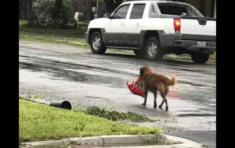 GUADALAJARA, JALISCO (28/AGO/2017).- La foto de un perro que escapa con una bolsa de comida tras el paso de la tormenta tropical "Harvey" en Sinton, Texas, ha conmovido a usuarios de redes sociales.Salvador Segovia dejó al perro de su nieto, “Otis”, en la parte trasera de su casa junto con comida y agua, justo antes de que “Harvey” golpeara Texas el pasado viernes, sin embargo al día siguiente, el animal ya no estaba en el lugar, contó el hispano a The Washington Post.Mientras tanto, el sábado por la mañana, Tiele Dockens daba una vuelta por el vecindario cuando vio a “Otis” llevando una gran bolsa de comida para perros.La mujer no tardó en tomar una foto y compartirla en su cuenta de Facebook. “Este perro está caminando alrededor de Sinton TX cargando una bolsa entera de alimento para perro con él”, escribió junto a la imagen.La instantánea se viralizó rápidamente y generó alrededor de tres mil 500 mensajes en los que halagaban al tierno can, además de haber sido compartida más de 37 mil veces y generado 17 mil “me gusta”.Después de eso, Dockens siguió al perro para cerciorarse que no estuviera perdido cuando llegaron a la casa de Segovia.Sin perder el tiempo, “Otis” se acercó a la casa, dejó la bolsa de comida y se tendió en el suelo.El hombre aseguró que el animal es una celebridad en el pueblo pues constantemente recibe comida de los vecinos.“Otis” tiene alrededor de seis años, y llegó a Segovia luego de que un hombre que conducía por ahí se detuvo un día y le dijo que planeaba dejar el perro en otro lugar, pero el hispano prefirió quedarse con el can que ahora es la mascota de su nieto.