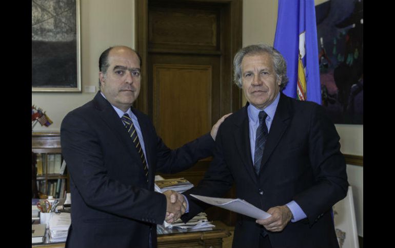 WASHINGTON, ESTADOS UNIDOS (05/MAY/2017).- La Asamblea Nacional de Venezuela presentó una solicitud ante la Organización de los Estados Americanos (OEA) para que se frene el proceso de salida del sistema interamericano, iniciado la semana pasada por el gobierno del presidente Nicolás Maduro. El presidente de la asamblea, Julio Borges, entregó esta mañana al secretario general de la OEA, Luis Almagro, el decreto aprobado por el poder Legislativo este martes, determinando que la decisión del gobierno debe ser anulada y por lo tanto Venezuela no puede salir del sistema interamericano. "Esto pararía el reloj de los dos años", dijo Borges a periodistas al término de su encuentro de 40 minutos con Almagro en la sede de la organización, a quien además entregó la explicación de los argumentos legales que sustentan su solicitud. "La Constitución de Venezuela establece que todo los pactos, todos los acuerdos internacionales relacionados con derechos humanos tienen rango constitucional, son parte de la Constitución, por lo tanto ni aunque el Parlamento o el Ejecutivo quisiera salirse de cualquiera de estos acuerdos pondrían hacerlo", explicó. Borges precisó que una vez que el Estado venezolano ha suscrito acuerdos que incorporan este aspecto, "ya eso queda en piedra". Venezuela oficializó el pasado viernes su decisión de dejar la OEA con la entrega de una carta, como lo establece el estatuto constitutivo, marcando la primera salida de un Estado miembro en los 69 años de historia del organismo. Aunque con ese acto el gobierno del presidente Maduro suspendió de manera efectiva sus actividades al interior del organismo, del cual fue fundador, la entrega de la misiva marcó empero el inicio de un proceso de dos años antes de que la salida de Venezuela sea efectiva. La salida de Venezuela fue precipitada por el voto del miércoles mediante el cual el Consejo Permanente de la OEA convocó a una reunión de consulta de cancilleres para discutir la crisis política y humanitaria, ante el malestar de ese gobierno que lo consideró como una intromisión en sus asuntos internos. "Ese proceso es completamente nulo y además contrario a la Constitución" insistió Borge, quien reconoció que la decisión final será de la OEA, donde empero perece existir un desconocimiento preciso sobre el curso de esta última petición. Los repetidos cuestionamientos a funcionarios de la organización para precisar los alcances de la solicitud de este jueves y el curso que tomará ahora el proceso iniciado la semana pasada con la carta del gobierno venezolano, quedaron sin respuesta. Además de su encuentro con Almagro, Borges celebrará encuentros con miembros del Congreso que favorecen ampliar las sanciones impuestas a funcionarios venezolanos involucrados en violaciones de derechos humanos y la comisión de posibles delitos como tráfico de drogas. Entre estos figuran el senador republicano por la Florida, Marco Rubio, así como los también congresistas republicanos por ese mismo estado, Ileana Ros Lethinen y Mario Díaz Balart. El legislador evitó indicar si buscará encuentros con funcionarios de la administración del presidente Donald Trump, que en días recientes ha externado su preocupación por el grave deterioro de la crisis política y humanitaria en Venezuela.