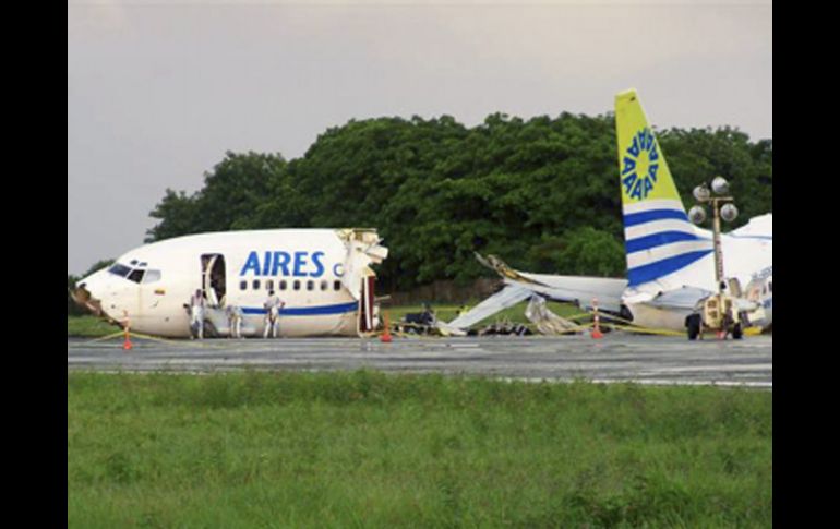 Internacional | Rayo parte en tres a un avión en Colombia Piloto evita tragedia aérea en medio de la tormenta De los 131 pasajeros que abordaban a la aeronave, sólo uno perdió la vida Por: EL INFORMADOR 17 de agosto de 2010 - 02:43 hs BOGOTÁ, COLOMBIA (17/AGO/2010).- Un avión Boeing 737 con 131 personas a bordo, al parecer alcanzado por un rayo, se estrelló y partió en tres pedazos cuando iba a aterrizar en una isla del Norte de Colombia y dejó como saldo una pasajera muerta. La nave de la aerolínea comercial Aires, que había partido de Bogotá, se estrelló mientras se aproximaba a la pista del aeropuerto Gustavo Rojas Pinilla de la Isla de San Andrés, en el Caribe. “La pericia del piloto evitó que la nave chocara con (el edificio) el aeropuerto”, dijo en diálogo telefónico el coronel David Barrero, comandante del Grupo Aéreo del Caribe, de la Fuerza Aérea colombiana, con sede en San Andrés. Versiones de la aeronáutica de San Andrés y tripulantes del avión mencionan que un rayo, en medio de la fuerte tormenta eléctrica, pudo haber alcanzado el avión. Barrero señaló que aunque son varias las hipótesis sobre las causas del percance, era posible que la nave al hacer su descenso fuera reduciendo la velocidad a unos 150 a 180 kilómetros por hora y se fracturara al arrastraste por la pista. De los 131 ocupantes del avión —seis tripulantes y 125 pasajeros, entre ellos cuatro menores de edad, incluso un bebé de año y medio— sólo murió una pasajera: Amar Fernández de Barreto, de 68 años, según las autoridades. La mujer murió víctima de un paro cardiaco, cuando era trasladada para recibir atención médica. Al menos cinco personas más resultaron con heridas graves, entre ellas una niña de 12 años. GuíaRiesgo permanente¿Con qué frecuencia un avión es alcanzado por un rayo? Los aviones comerciales son blanco de rayos, en promedio, una vez cada mil horas de vuelo, de acuerdo con la Oficina Nacional de Estudios e Investigaciones Aeroespaciales (ONERA) de Francia en su sitio de internet. ¿Qué le sucede al aparato cuando tal descarga lo golpea? En general el rayo se propaga por la superficie externa del avión, cuya estructura es esencialmente de aluminio, debido al efecto de caja de Faraday. Según la ONERA, el fenómeno es tomado en cuenta en el diseño del aparato. ¿Una aeronave sale ilesa después de ser afectada por el fenómeno? Por el golpe de un rayo, el circuito eléctrico puede resultar afectado, pero tras un estrépito a bordo del avión y el reinicio del sistema, todo vuelve a funcionar con normalidad. Sin embargo, un cambio repentino de dirección del viento o una fuerte turbulencia —que puede ser consecuencia de un rayo— en el momento del aterrizaje, sí es capaz de provocar la caída brusca del avión. Temas América Latina Colombia Accidentes aéreos Lee También Choque en Periférico a la altura de Valdepeñas produce congestión vehicular Palabras de Trump, “groseras e ignorantes con Colombia”: Gustavo Petro Lugar de Sudamérica prohíbe Halloween por usar símbolos vinculados a la muerte Equipos que podrían quedar eliminados del Play In en la jornada doble de la Liga MX Recibe las últimas noticias en tu e-mail Todo lo que necesitas saber para comenzar tu día Registrarse implica aceptar los Términos y Condiciones