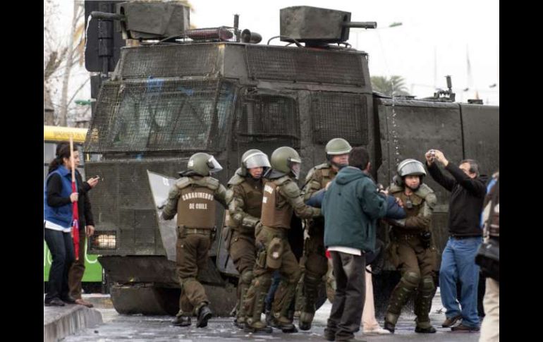 Internacional | Aseguró que el país funciona ''con bastante normalidad'' Piñera lamenta incidentes violentos en paro Afirmó que su gobierno respeta el derecho de los ciudadanos a manifestarse pacíficamente, pero también debe proteger a la gente que quiere ir a trabajar Por: EFE 24 de agosto de 2011 - 11:57 hs Las movilizaciones se han saldado con la detención de 35 personas en todo el país. AFP / SANTIAGO DE CHILE, CHILE (24/AGO/2011).- El presidente de Chile, Sebastián Piñera, lamentó los incidentes violentos que se han registrado en la primera jornada del paro nacional de dos días convocado por la principal central sindical chilena, aunque aseguró que hasta el momento el país funciona "con bastante normalidad". "Funcionan los hospitales, el transporte público, los aeropuertos y las empresas. La gente está pudiendo hacer su vida de forma bastante normal", dijo Piñera en una actividad oficial en el Palacio de La Moneda. El gobernante lamentó los "brotes de violencia" que surgieron en algunos puntos de la capital y otras ciudades, donde grupos de jóvenes, en su mayoría encapuchados, levantaron barricadas y se enfrentaron a la policía con cócteles molotov y piedras. "Hay enfrentamientos entre encapuchados, que da la impresión que lo único que quieren es destruir y causar dolor, y los carabineros, que tienen la obligación de mantener el orden público", sostuvo. En ese sentido, Piñera dijo que el Gobierno respeta el derecho de los ciudadanos a manifestarse pacíficamente, pero también debe "proteger a la gente que quiere ir a trabajar". El presidente aseguró que el objetivo de la huelga es "causarle daño a Chile y a los chilenos" y la consideró un "instrumento equivocado" para resolver las demandas de los convocantes. "La forma de solucionar los problemas es con diálogo, acuerdos y buena voluntad", afirmó Piñera. El paro fue convocado bajo una plataforma de demandas que van desde reformas a la Constitución hasta el aumento de impuestos a las empresas, la creación de un fondo de pensiones estatal y más recursos para Salud y Educación. Piñera dijo a los trabajadores y estudiantes que el Gobierno es consciente de que el país tiene "muchos problemas", aunque puntualizó que la mayoría son heredados de gobiernos anteriores. En materia de educación, reconoció que se debe mejorar la calidad de este servicio y ofrecer "más y mejores becas" y préstamos a los estudiantes secundarios y universitarios. "Para muchas familias el sueño del hijo profesional se convierte muchas veces en una verdadera pesadilla", sostuvo. En un nuevo reporte, el subsecretario del Interior, Rodrigo Ubilla, informó de que hasta el momento las movilizaciones se han saldado con la detención de 35 personas en todo el país, uno de ellos por intento de homicidio contra un carabinero. Además, once personas resultaron heridas, nueve de las cuales son policías y los dos restantes civiles. Temas América Latina Chile Manifestaciones en el mundo Sebastián Piñera Lee También Marchas CDMX: HOY, 14 de octubre, estas son las afectaciones viales Beccacece destaca el reto ante México en el Estadio AKRON Marchas CDMX: Estas son las afectaciones viales de hoy, 13 de octubre Chivas y América empatan en partido amistoso Recibe las últimas noticias en tu e-mail Todo lo que necesitas saber para comenzar tu día Registrarse implica aceptar los Términos y Condiciones