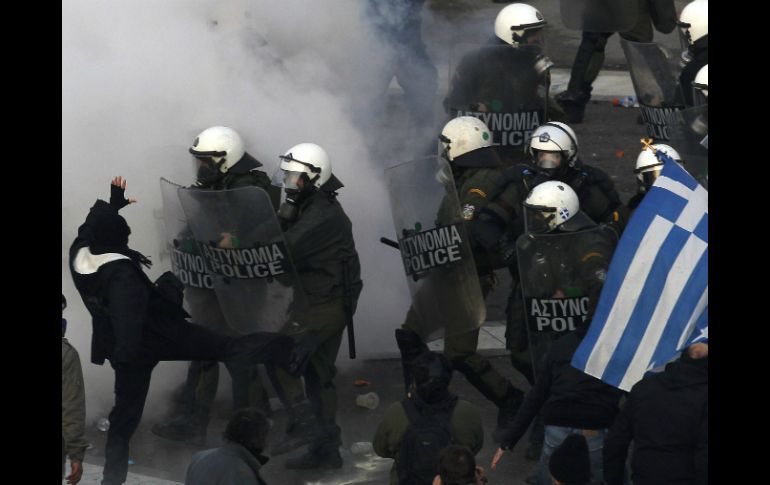 Internacional | Las miles de personas lanzaban piedras y bombas molotov afuera del Parlamento en Atenas Policía griega arroja gas lacrimógeno a manifestantes Las miles de personas lanzaban piedras y bombas molotov afuera del Parlamento en Atenas, lo que hizo que la policía les arrojara gases lacrimógenos Por: REUTERS 12 de febrero de 2012 - 09:26 hs Los protestantes dicen que los griegos comunes ya han tenido que soportar la mayor parte de la carga de recortes de gastos. REUTERS / ATENAS, GRECIA (12/FEB/2012).- La policía griega arrojó el domingo gases lacrimógenos a manifestantes que lanzaban piedras y bombas molotov fuera del Parlamento en Atenas, mientras los legisladores debatían un impopular paquete de austeridad exigido por los prestamistas de la UE y el FMI a cambio de un segundo rescate. La policía antidisturbios lanzó granadas con humo lacrimógeno para dispersar a los manifestantes en la Plaza Sintagma, situada frente al Parlamento. La multitud de decenas de miles de personas fue la mayor en meses de manifestaciones en contra de los planes de austeridad. La mayoría de los manifestantes empezaba a dispersarse, pero pequeños grupos continuaban enfrentándose a la policía cerca del edificio del legislativo, mientras el gas lacrimógeno se extendía por toda la plaza. Los legisladores están debatiendo un proyecto de ley que establece tres mil 300 millones de euros en recortes adicionales de salarios, pensiones y despidos a cambio del paquete de rescate de 130 mil millones de euros de la Unión Europea y el Fondo Monetario Internacional, el segundo de Grecia. Los manifestantes dicen que los griegos comunes ya han tenido que soportar la mayor parte de la carga de recortes de gastos y alzas de impuestos dispuestos previamente para reducir la enorme deuda del país. Temas Europa Grecia Crisis en Grecia Lee También ¿Cómo se despliegan los cárteles mexicanos en Australia? Estrategia contra los aranceles Trabajadores de país europeo se irán a huelga contra jornada laboral de 13 horas Memo Ochoa debuta con goleada en Chipre Recibe las últimas noticias en tu e-mail Todo lo que necesitas saber para comenzar tu día Registrarse implica aceptar los Términos y Condiciones