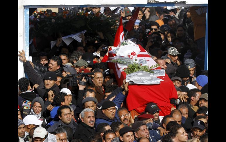 Internacional | Los concentrados cantan el himno nacional y lanzan proclamas contra el Gobierno Policía tunecina lanza gases en funeral de Chokri Belaid Las fuerzas de seguridad han empleado el material antidisturbios a la entrada del cementerio El Yelez donde miles de personas esperan la llega del féretro Por: EFE 8 de febrero de 2013 - 07:45 hs TÚNEZ (08/FEB/2013).- La Policía tunecina ha lanzado gases lacrimógenos contra un grupo de personas que participaban en el multitudinario funeral del político opositor Chokri Belaid, asesinado el miércoles. Las fuerzas de seguridad han empleado el material antidisturbios a la entrada del cementerio El Yelez donde miles de personas esperan la llega del féretro de Belaid. Según unas declaraciones del portavoz del Ministerio de Interior, Jaled Trush a la televisión estatal, la Policía se vio obligada a actuar contra un grupo de "violentos que han intentado agredir varios vehículos y comercios". Los concentrados cantan el himno nacional y lanzan proclamas contra el Gobierno y contra el líder del partido gubernamental islamista Al Nahda, Rachid Ganuchi. "Queremos pan, queremos agua, no queremos a Ganuchi" o "Ganuchi, asesino", son algunos de los gritos de quienes esperan en el cementerio la llegada del cadáver del activista político, que también gritan lemas contra la violencia. El principal sindicato del país, la Unión General de Trabajadores Tunecinos (UGTT), y los partidos de la oposición convocaron hoy una jornada de huelga general coincidiendo con el entierro de Belaid, que ha sido declarado día de luto nacional. Estas agrupaciones responsabilizan al Ejecutivo y a Al Nahda, principal socio del gobierno, de la violencia política en el país, cuya última víctima ha sido Belaid. Varias fuentes locales y medios tunecinos han informado de concentraciones en solidaridad con Belaid, líder del Partido de los Patriotas Demócratas Unificado y coordinador de la plataforma de izquierda Frente Popular, en varias ciudades del país, cuyo asesinato desencadenó una ola de indignación y protestas en las calles de Túnez. Temas África Manifestaciones en el mundo Túnez Recibe las últimas noticias en tu e-mail Todo lo que necesitas saber para comenzar tu día Registrarse implica aceptar los Términos y Condiciones