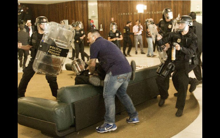 BRASILIA, BRASIL (18/ABR/2017).- Una manifestación de policías y agentes de seguridad pública intentó este martes ingresar y ocupar el Congreso de Brasil, lo que provocó la reacción de la policía legislativa y enfrentamientos con el uso de gas pimienta y bombas de efecto moral.Algunas personas que estaban presentes en la entrada principal de la Cámara de Diputados sufrieron descomposturas y hubo empujones y vidrios quebrados.Con el tumulto, las autoridades del Congreso decidieron cerrar todos los accesos al edificio.De acuerdo a la Policía Militar del Distrito Federal, había cerca de mil policías manifestándose en el césped frente a la sede del Legislativo.En un comunicado, el Sindicato de Policías Civiles del DF afirmó que la propuesta de reforma previsional "es una amenaza a la sociedad y resultará en una policía cada vez más envejecida en las calles".La Federación Nacional de Policías Federales (Sinafep), a su vez, dijo que no se opone apenas a los puntos de la reforma previsional que afectan a los policías, sino al proyecto "en su conjunto".Ante la fuerte oposición de diversos sectores a la reforma, este martes el gobierno anunció una serie de cambios en el proyecto original, entre ellos la reducción de 65 para 60 años en la edad mínima jubilatoria para las mujeres, pero la mantuvo en 65 años para los hombres.Actualmente, las mujeres pueden pedir la jubilación cuando suman 30 años de aportes y los hombres después de los 35 años de trabajo, al margen de la edad.Para recibir el beneficio jubilatorio integral, afirma el gobierno, serán necesarios 40 años de aportes, y no 49 años como había propuesto en el proyecto original enviado al Congreso.El presidente Michel Temer asegura que la reforma es una necesidad para reequilibrar las cuentas públicas y que los cambios no afectarán a los más pobres.Por su parte, las grandes centrales sindicales brasileñas han desarrollado un cronograma de luchas contra el proyecto, que culminarán en una huelga general el próximo 28 de abril.De acuerdo a la Central Unica de Trabajadores (CUT), la reforma previsional "afecta principalmente a quienes más precisan, aquellos que comienzan a trabajar antes y en peores condiciones".