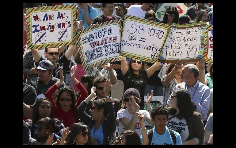 Internacional | Desde antes el presidente Obama ha tachado de 'equivocada' la legislación Prepara gobierno de EU acciones concretas contra ley Arizona La medida podría entrar en vigor el 29 de julio; el anuncio podría hacerse durante esta tarde Por: AP 6 de julio de 2010 - 11:55 hs Desde la promulgación de la ley, los manifestantes han salido a las calles para expresar su descontento. AP / PHOENIX, ARIZONA (06/JUL/2010).- El Departamento de Justicia de Estados Unidos se prepara para presentar una demanda que impugnará la constitucionalidad de una nueva ley de Arizona que criminaliza a los inmigrantes indocumentados. La proyectada querella fue confirmada a The Associated Press por un funcionario del Departamento de Justicia que está enterado de la decisión. El funcionario declinó ser identificado antes del anuncio público, programado para el martes más tarde. La demanda argumentará que la nueva legislación de Arizona prevé que policías locales y estatales interroguen e incluso arresten indocumentados durante la aplicación de otras leyes, como revisiones de tránsito y usurpación de funciones federales. La medida federal es esperada desde hace varias semanas. El presidente Barack Obama ha tachado de equivocada a la nueva ley de Arizona. Los simpatizantes de la legislación, en cambio, creen que es una reacción razonable frente a la inacción federal sobre la inmigración sin papeles. La ley establece que los agentes, mientras ejercen otras leyes, interroguen a una persona sobre su condición migratoria si existe una sospecha razonable de que su presencia en el país es ilegal. La gobernadora, la republicana Jan Brewer, firmó la legislación en abril y comenzaría a regir el 29 de julio. Arizona aprobó la ley después de varios años de frustración por los problemas relacionados con la inmigración sin documentos, como el narcotráfico y los secuestros. El estado es el principal punto de ingreso para los indocumentados y alberga a unos 460 mil inmigrantes sin papeles. La demanda podría ser anunciada formalmente por el secretario de Justicia, Eric Holder y la secretaria de Seguridad Nacional, Janet Napolitano, quien fue gobernadora de Arizona. El presidente Obama abordó el tema de la ley de Arizona la semana pasada en un discurso sobre la necesidad de una reforma migratoria. Mencionó una de las mayores preocupaciones de las autoridades federales: que otros estados se vean alentados a seguir el caso de Arizona en la formulación de sus propias leyes sobre la inmigración. "Mientras otros estados y comunidades sigan sus propias formas, estamos ante la perspectiva de que se apliquen reglas diferentes en partes diferentes del país'', expuso Obama. "(Sería) un remiendo de reglas locales sobre la inmigración, donde todos sabemos que se necesita una clara norma nacional''. La ley penaliza como delito estatal que los inmigrantes con papeles no porten sus documentos migratorios y prohíbe que los jornaleros y las personas que solicitan sus servicios bloqueen el tránsito y las calles. La medida también prohíbe que las dependencias gubernamentales tengan políticas que limiten la aplicación de la ley federal de inmigración y permite a los habitantes de Arizona demandar a entidades oficiales que obstaculicen el ejercicio de las leyes de inmigración. Temas Norte América Ley antiinmigrantes Estados Unidos Recibe las últimas noticias en tu e-mail Todo lo que necesitas saber para comenzar tu día Registrarse implica aceptar los Términos y Condiciones