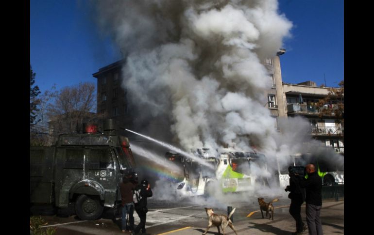 Internacional | Cifran en 400 millones de pesos las pérdidas por daños a los autobuses Protesta estudiantil deja 75 detenidos y 49 heridos en Chile El gobierno chileno cifró en 400 millones de pesos (unos 834 mil dólares) las pérdidas por los daños a tres autobuses del transporte Por: EFE 8 de agosto de 2012 - 19:19 hs SANTIAGO DE CHILE, CHILE (08/AGO/2012).- Cuarenta y nueve carabineros resultaron heridos, uno de ellos de gravedad, y 75 manifestantes fueron detenidos a raíz de una protesta no autorizada realizada hoy por los estudiantes de secundaria en la capital chilena, informaron fuentes municipales. Además, la intendenta de Santiago, Cecilia Pérez, cifró en 400 millones de pesos (unos 834 mil dólares) las pérdidas por los daños a tres autobuses del transporte público que fueron incendiados durante las escaramuzas entre los jóvenes y la policía. La marcha de la capital fue convocada por la Asamblea Coordinadora de Estudiantes Secundarios (ACES), con el respaldo de los universitarios, con el fin de mantener vivas las demandas por una educación pública, gratuita y de calidad. Los estudiantes querían marchar por la Alameda, la principal avenida de la capital, pero la Intendencia (gobernación) desechó ese recorrido y propuso dos alternativas que la ACES rechazó, por lo que la marcha no fue autorizada. En Santiago, la policía se enfrentó a los estudiantes con chorros de agua y carro lanzagases, así como personal montado a caballo. Los jóvenes lanzaron piedras y otros objetos a los policías, destrozaron mobiliario urbano e instalaron barricadas en las calles cercanas. También destrozaron vehículos particulares, así como las fachadas de una mutual de seguridad, algunos ventanales del edificio de la Telefónica y un concesionario de automóviles Según carabineros, también se registraron movilizaciones en ciudades como La Serena (norte), Viña del Mar (centro) y Valdivia (sur), con más de 50 detenidos y destrozos a la propiedad pública y privada. La intendenta Pérez dijo en una rueda de prensa que a los dirigentes estudiantiles no les importa estar al margen de la ley. "Esto ya no es un movimiento social que defiende ideas, es un movimiento político"., subrayó "No se hacen responsables ni de marchas legales ni de ilegales", añadió y recordó la marcha del pasado 28 de junio que sí fue autorizada, pero en la que también se registraron graves hechos de violencia. El ministro de Educación Harald Beyer, aseguró que "de esta forma (la violencia) no va a haber conversaciones". "Todos fuimos testigos de lo que ocurrió hoy. Pero la verdad es que los dirigentes estudiantiles, porque hay que distinguir entre ellos y los estudiantes que quieren una mejor educación, no pueden sostener esas palabras si quieren participar de buena fe en el debate público", dijo el titular de Educación. Por su parte, el ministro del Interior, Rodrigo Hinzpeter, calificó como "ridícula" la acusación de los dirigentes estudiantiles de que la quema de tres microbuses durante los disturbios ocurridos hoy en el centro de Santiago fue un montaje. Hinzpeter dijo que "lo único que faltaba es que los estudiantes digan que la quema de estos tres microbuses es un montaje, es francamente ridículo", enfatizó. "Como gobierno, la intendencia autorizó dos alternativas de recorridos, y los estudiantes se empecinaron en realizar el mismo recorrido que hicieron el 28 de junio que terminó de forma similar a hoy día", indicó el ministro a la Televisión Nacional. Temas América Latina Chile Manifestaciones en el mundo Estudiantes Recibe las últimas noticias en tu e-mail Todo lo que necesitas saber para comenzar tu día Registrarse implica aceptar los Términos y Condiciones