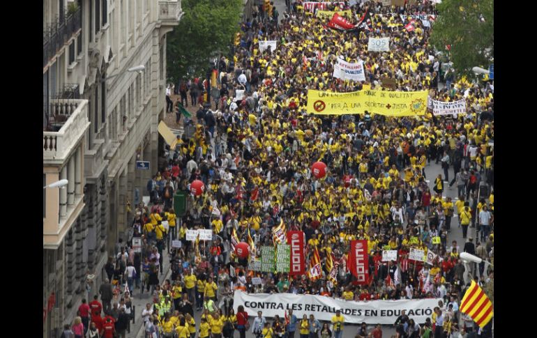 Internacional | La marcha estuvo encabezada por un grupo de niños de unos seis años Protestan en Barcelona contra los recortes en educación Fue convocada por sindicatos, padres de alumnos y asociaciones de defensa de la enseñanza pública Por: AFP 22 de mayo de 2012 - 10:26 hs Participaron familias enteras, niños con pancartas, estudiantes universitarios, maestros y profesores. EFE / BARCELONA, ESPAÑA (22/MAY/2012).- Unas tres mil personas según la policía y más de 18 mil según los organizadores, marcharon este martes por las calles de Barcelona, segunda mayor ciudad de España, para protestar contra los recortes en la educación pública en una jornada de huelga del sector en todo el país. Familias enteras, niños con pancartas, estudiantes universitarios, maestros y profesores vestidos con camisetas amarillas en las que se leía "SOS educación pública" tomaron el centro de la ciudad al grito de "¡Educación pública y de calidad!" y "¡No a la privatización!". Convocada por sindicatos, padres de alumnos y asociaciones de defensa de la enseñanza pública, la marcha estuvo encabezada por un grupo de niños de unos seis años con una colorida pancarta. En otras podía leerse "Contra los recortes en educación", "Recortar es robar" o "Con dos carreras y pelando patatas". En un ambiente festivo, la marcha partió pasado el mediodía de la Plaza Universidad para culminar, una hora y media después, en una asamblea frente a la Estación de Francia. Cristina Otero, de 25 años y estudiante de Filología, lidera un colectivo denominado "Macedonia de ideas". Recoge propuestas que cuelga en el lugar donde se reúne la manifestación. "De alguna de estas ideas se sacará algo", enfatizó. Las ideas van desde "cuidemos a los gatitos", visiblemente escrita por un niño y con dibujo infantil, a "matemos la monarquía, no la educación". "Aquí no se trata de profesores y alumnos. Esto nos afecta a todos. He trabajado hasta ahora en una portería, lo que me permitió que mi hija sea hoy universitaria. Pero ¿y sus hijos podrán estudiar?", expresó Rogelia Fortuna, 65 años, jubilada. Joanna Martí Virgili, de 29 años, estudiante de Filosofía afirmó: "todos estamos obligados a salir a la calle y gritar a favor de la educación y la sanidad para todos y de calidad, como lo ha sido hasta ahora". Docentes de todos los niveles educativos estaban convocados el martes en España a una jornada de huelga nacional para protestar contra los recortes en educación con los que el gobierno conservador de Mariano Rajoy quiere ahorrar tres mil millones de euros por año. Temas Europa España Manifestaciones en el mundo Lee También Lemus respalda a productores de maíz y reconoce su reclamo 'por un precio justo' EN VIVO: Maiceros bloquean carretera Guadalajara-Morelia ¿Qué exigen los productores de maíz? Aquí te decimos SAT: ¿Cómo saber si hay servicio tras el paro de trabajadores? Recibe las últimas noticias en tu e-mail Todo lo que necesitas saber para comenzar tu día Registrarse implica aceptar los Términos y Condiciones
