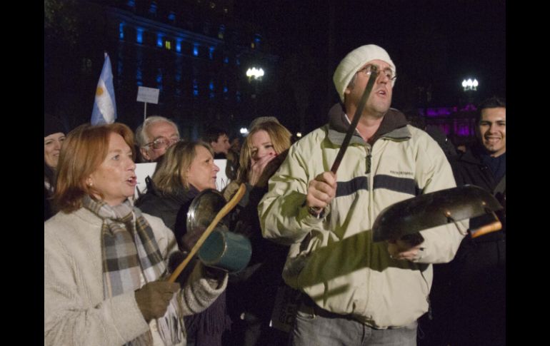 Internacional | Salieron a las calles con cacerolas para manifestarse Protestan en Buenos Aires contra política de Fernández Cientos de personas convocadas a protesta, a través de las redes sociales, salieron a las calles con cacerolas para manifestarse Por: EFE 7 de junio de 2012 - 18:25 hs Las manifestaciones con cacerolas se desarrollaron en varios barrios acomodados del norte de Buenos Aires. AP / BUENOS AIRES, ARGENTINA (07/JUN/2012).- Cientos de personas salieron hoy a las calles de Buenos Aires para protestar, cacerola en mano, contra la política del Gobierno de Cristina Fernández. Como la semana pasada, cuando se registraron los primeros "cacerolazos" contra el Gobierno de Fernández tras su reelección, la protesta fue convocada a través de las redes sociales con reclamos contra la inseguridad, la inflación, la corrupción y las restricciones al cambio de dólares. Las manifestaciones se desarrollaron en varios barrios acomodados del norte de la ciudad, como Recoleta, Palermo y Belgrano, en la emblemática avenida 9 de Julio y en la Plaza de Mayo, mientras que varios cientos de personas se concentraron frente a la residencia presidencial de Olivos. Los manifestantes cortaron el tránsito en algunas de las más importantes avenidas de la capital, entonaron el himno nacional y corearon consignas contra el Gobierno. Medios locales informaron de la convocatoria de protestas similares en varias ciudades del interior del país, como Santa Fe, Córdoba y Entre Ríos. La protesta de hoy se produce apenas un día después de que la presidenta anunciara su intención de cambiar su depósito a plazo fijo en dólares por un fondo en pesos en argentinos, para predicar con el ejemplo e incentivar el ahorro en moneda nacional. El Fisco argentino incrementó las restricciones a la compra de dólares en las últimas semanas, con nuevas regulaciones para el acceso a la divisa estadounidense para viajar o cancelar créditos hipotecarios, lo que ha disparado su valor en el mercado paralelo. Temas América Latina Manifestaciones en el mundo Argentina Cristina Fernández Lee También Marchas CDMX: HOY, 17 de octubre, estas son las afectaciones viales Sin maíz no hay país Esto se sabe de la megamarcha de maestros en CDMX el 17 de octubre Marchas CDMX: HOY, 16 de octubre, estas son las afectaciones viales Recibe las últimas noticias en tu e-mail Todo lo que necesitas saber para comenzar tu día Registrarse implica aceptar los Términos y Condiciones