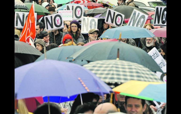Internacional | Organizaciones convocan a manifestarse en decenas de ciudades Protestan en calles españolas contra el plan económico Bajo el lema “con la sanidad y la educación no se juega”, exigen alternativa para salir de la crisis Por: EFE 30 de abril de 2012 - 02:30 hs Miles de personas se pronuncian en Madrid contra los recortes ordenados por el Gobierno de Mariano Rajoy. AFP / MADRID, ESPAÑA (30/ABR/2012).- Descontento generalizado. Miles de personas se manifestaron en ciudades de toda España en defensa de la sanidad y la educación y para expresar su rechazo a los planes del Gobierno de ahorrar 10 mil millones de euros en ambos servicios públicos para cumplir los objetivos de reducción del déficit. Las organizaciones sociales convocantes de las protestas, bajo el lema “Con la Sanidad y la Educación no se juega”, exigieron al término de la manifestación en Madrid “otra manera de salir de la crisis” frente a los ajustes aplicados por el Gobierno. De acuerdo con la última Encuesta de Población Activa (EPA), difundida el pasado viernes, en los tres primeros meses de 2012 la ocupación disminuyó en 374 mil 300 personas, hasta situar el número total de desempleados en España en cinco millones 639 mil 500, 24.44 por ciento. El Gobierno de Mariano Rajoy, del conservador Partido Popular (PP), ha aprobado unos austeros presupuestos para 2012 que incluyen un objetivo de déficit público de 5.3% del PIB, en el horizonte de dejarlo en 2013 en 3%, como exige el Pacto de Estabilidad de la Unión Europea. Además en Madrid, la Plataforma Social en Defensa del Estado de Bienestar y los Servicios Públicos, que agrupa a 50 organizaciones sociales, entre ellas los sindicatos mayoritarios, Comisiones Obreras (CCOO) y la Unión General de Trabajadores (UGT) también convocaron protestas en decenas de ciudades de España. España atraviesa una grave crisis económica, con desempleo galopante que afecta ya a uno de cada cuatro trabajadores Temas Europa España Crisis Recibe las últimas noticias en tu e-mail Todo lo que necesitas saber para comenzar tu día Registrarse implica aceptar los Términos y Condiciones