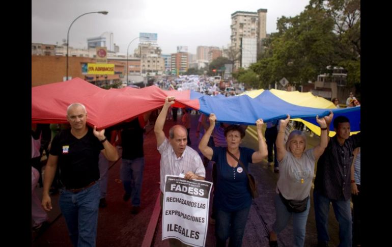 Internacional | Marchan, además, por la falta de aumentos salariales que compensen la inflación Protestan trabajadores venezolanos contra políticas oficialistas La protesta es en defensa de la libertad y la autonomía sindical, por una contratación colectiva Por: NTX 5 de febrero de 2011 - 19:01 hs Trabajadores y estudiantes marchan en rechaza de políticas oficiales. AP / CARACAS, VENEZUELA (05/FEB/2011).-Centenares de trabajadores protestaron hoy en la capital venezolana contra la política de expropiaciones que desarrolla el gobierno del presidente Hugo Chávez y la falta de aumentos salariales que compensen la inflación. Trabajadores de empresas nacionalizadas y de otras amenazadas de intervención, acompañados por legisladores de oposición y estudiantes, marcharon este sábado por calles de la zona este de Caracas, para expresar su rechazo a la política oficial. Durante la movilización, el diputado opositor y ex líder obrero Andrés Velásquez dijo a periodistas que la protesta de los trabajadores es en defensa de la libertad y la autonomía sindical, por una contratación colectiva, así como por un incremento salarial. 'Es un reclamo que trasciende más allá de los sectores trabajadores del país y se hace en nombre de todo el país frente a una brutal política económica que destruye el salario de los trabajadores y liquida el poder adquisitivo de todos los trabajadores', dijo. Por su parte, el secretario general de la opositora Confederación de Trabajadores de Venezuela (CTV), Froilán Barrios, afirmó que la marcha será el inicio de un 'nuevo sindicalismo' que será autónomo de los partidos políticos y del gobierno. 'Autónomo de partidos, autónomo de cualquier tipo de gobiernos, sea de oposición, o sea oficialista. El gobierno dice ser obrerista y defensor de los trabajadores, pues aquí están los trabajadores, escuche la voz de los trabajadores', demandó. Temas América Latina Venezuela Hugo Chávez Lee También ¿Quién ganará el partido entre las América y Chivas? Esto dice la IA José Jerí asume como presidente de Perú ¿Por qué María Corina Machado ganó el Nobel de la Paz? Congreso de Perú destituye como presidenta a Dina Boluarte Recibe las últimas noticias en tu e-mail Todo lo que necesitas saber para comenzar tu día Registrarse implica aceptar los Términos y Condiciones