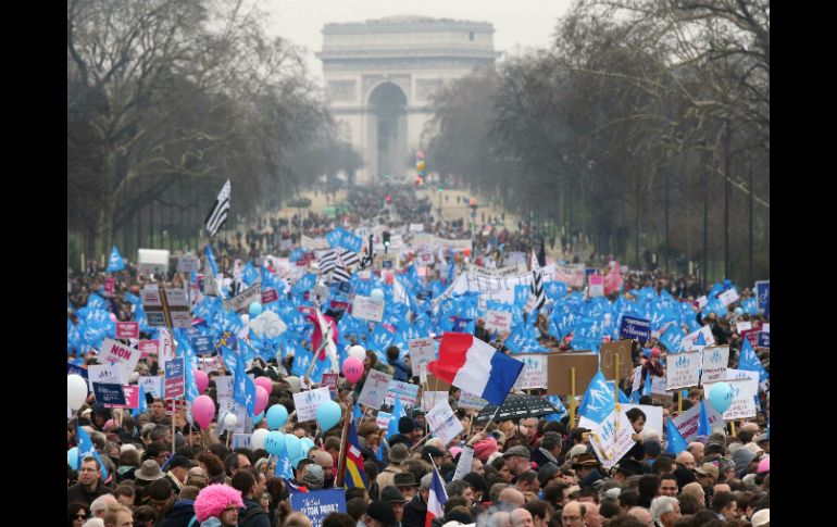 Internacional | Se reunieron ante la torre Eiffel para participar en la protesta Protestantes contra el matrimonio gay se reúnen en la Torre Eiffel Se reunieron ante la torre Eiffel para participar en la protesta Por: AP 13 de enero de 2013 - 17:04 hs La manifestación congestionó los bulevares mientras los manifestantes caminaban hasta la torre Eiffel. AFP / PARIS, FRANCIA (13/ENE/2013).- Con banderas en las manos, centenares de miles de personas se congregaron el domingo ante la Torre Eiffel para participar en una protesta contra la decisión del presidente socialista Francois Hollande de legalizar el matrimonio homosexual y de permitir a las parejas gay adoptar y concebir hijos. La oposición al plan de Hollande ha resaltado las divisiones entre la secular pero católica sociedad francesa, especialmente en las zonas rurales. Si bien los sondeos de opinión indican que una mayoría de la sociedad respalda el matrimonio gay, ese respaldo es menor cuando hay niños de por medio. La manifestación comenzó en tres puntos de París y congestionó los bulevares mientras los manifestantes caminaban unos seis kilómetros (4 millas) hasta la torre. La Policía capitalina calculó que participaron unas 340 mil personas, una de las manifestaciones más grandes en la capital francesa desde la protesta sobre la enseñanza en 1984. "Esta ley guiará un cambio en la civilización que nosotros no queremos", dijo Philippe Javaloyes, profesor de Literatura que llegó en autobús con otras 300 personas del Franco Condado, en el oriente del país, en la frontera con Suiza. "No tenemos nada en contra de diferentes maneras de vivir, pero creemos que un niño debe crecer con una madre y un padre". La oposición pública encabezada por líderes religiosos ha socavado el plan de Hollande en meses recientes. Alrededor de 52% de los franceses estuvieron a favor de la legalización del matrimonio homosexual, de acuerdo con una encuesta dada a conocer el domingo, por debajo del 65% que acumulaban en agosto. La Unión Civil en Francia, permitida desde 1999, es tan popular entre parejas heterosexuales como homosexuales, pero la ley no prevé la adopción o la reproducción asistida, tema que está en el centro del debate. El Partido Socialista de Hollande se ha alejado del debate sobre reproducción asistida, tras prometer examinar el tema en marzo luego que hubo cierta división al interior sobre incluirla en la propuesta más reciente. Sin embargo, eso no alivió las preocupaciones de muchos de los que asistieron a la protesta del domingo, quienes temen que sea sólo una cuestión de tiempo. "Han hablado de ponerlos en los documentos de identidad como Padre 1, Padre 2, Padre 3, Padre 4. Mamá, papá y niños serán borrados del mapa y eso sería malo para cualquier país del mundo, cualquier civilización", dijo Melissa Michel, una madre franco-estadounidense de cinco que está entre el grupo que llegó en un tren reservado especialmente para ir a la protesta desde el sur de Francia. El apoyo al matrimonio homosexual y especialmente a la adopción por parte de parejas del mismo sexo ha sido particularmente tenue fuera de París y la gente de lejos de la capital francesa se manifestó el domingo en medio de banderas de las diferentes regiones de la comarca francesa y emblemas que datan de la Edad Media, mientras coreaban: "Papá, mamá". En caso de ser aprobado el plan por el parlamento, Francia se convertiría en el 12 país en el mundo que legaliza el matrimonio entre personas del mismo sexo y, hasta ahora, el más grande en términos económicos y de influencia diplomática. Temas Europa Paris Francia Matrimonio homosexual Torre Eiffel Lee También ¿Cómo se despliegan los cárteles mexicanos en Australia? Macron tiene nuevo gabinete y enfrenta un complicado reto Más de 313 mil menores de edad viven en matrimonio en México Guillermo del Toro rescata el "stop motion" con este nuevo proyecto Recibe las últimas noticias en tu e-mail Todo lo que necesitas saber para comenzar tu día Registrarse implica aceptar los Términos y Condiciones