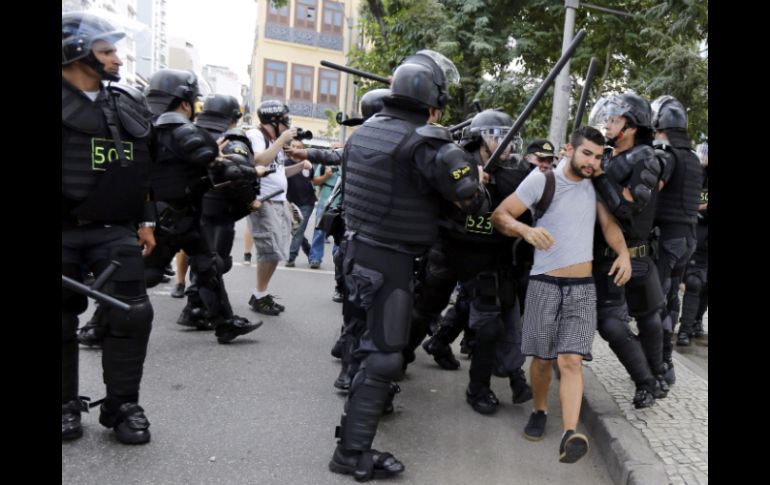 Internacional | Varios manifestantes portaban cócteles molotov, cuchillos y botellas de vinagre Protestas en Brasil dejan 18 detenidos en tercer día del Mundial Varios manifestantes portaban cócteles molotov, cuchillos, botellas de vinagre y máscaras Por: AFP 14 de junio de 2014 - 18:30 hs Las protestas continún pero son mucho menores, aunque a veces más violentas y radicales. EFE / RIO DE JANEIRO, BRASIL (14/JUN/2014).- Protestas contra el Mundial Brasil 2014 en Belo Horizonte y Fortaleza dejaron un saldo de al menos 18 detenidos, mientras en Río de Janeiro la policía dispersó con gas pimienta a hinchas argentinos en el tercer día del torneo. La protesta en Belo Horizonte, capital de Minas Gerais, donde este sábado se enfrentaron Colombia y Grecia (3-0), se saldó con 15 personas detenidas por portar cócteles molotov, cuchillos, botellas de vinagre y máscaras, informó la radio CBN citando fuentes policiales. El grupo, de unas 200 personas, quería llegar hasta el estadio Mineirão donde se jugaba el partido, pero la policía lo impidió. No se registraron enfrentamientos. En Fortaleza, capital de Ceará, donde Uruguay fue derrotado 3-1 por Costa Rica, un centenar de manifestantes se aproximó al estadio Castelão, en una protesta que terminó sin enfrentamientos con la policía pero con tres detenidos, según el portal de noticias G1. Mientras tanto, en la famosa playa de Copacabana, en Río de Janeiro, los argentinos montaron una verdadera fiesta un día antes del estreno de su selección ante Bosnia Herzegovina en el estadio Maracaná, consignó G1. La euforia de los hinchas albicelestes provocó una interrupción del tráfico en la Avenida Atlántica que corre junto al mar en este barrio de la zona sur de Río, hasta que la multitud fue dispersada por la policía con gas pimienta. Según G1, eran unos mil 500 hinchas; según la prensa argentina, eran muchos más los que se reunieron en Copacabana para homenajear a su selección antes del debut en el Mundial. La fiesta de los argentinos en Copacabana recibió hasta la "bendición" de un hombre que se paseaba en un vehículo caracterizado como... el papa argentino Francisco, un apasionado del fútbol. El falso Papa saludaba desde su carro con una réplica del trofeo del Mundial en las manos. Brasileños y argentinos son eternos rivales en el fútbol, y enardecidos, los argentinos provocaban a sus vecinos al grito de "¡Maradona es mejor que Pelé!". Una histórica revuelta social tuvo lugar en junio del año pasado contra la corrupción de la clase política brasileña y los 11 mil millones de dólares de recursos públicos que costó organizar el Mundial, cuando el país tiene servicios públicos deficientes que requieren inversiones. Las protestas han continuado desde entonces pero son mucho menores, aunque a veces más violentas y radicales. El Mundial arrancó el jueves y seguirá hasta el 13 de julio. Temas América Latina Brasil Manifestaciones en el mundo Mundial Brasil 2014 Recibe las últimas noticias en tu e-mail Todo lo que necesitas saber para comenzar tu día Registrarse implica aceptar los Términos y Condiciones