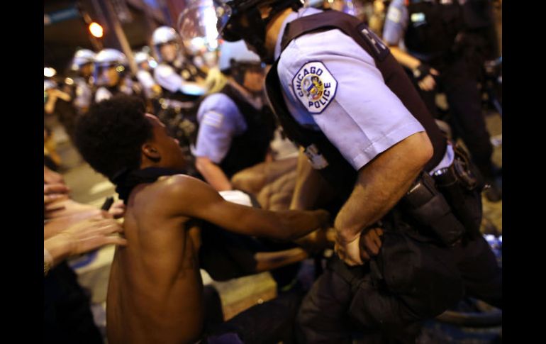 Internacional | Los quejosos reprochan la guerra, el cambio climático, entre otros temas Protestas en Chicago dejan 45 detenidos y cuatro policías heridos La manifestación ha sido una de las más grandes que haya visto la ciudad en años Por: AP 20 de mayo de 2012 - 20:27 hs La policía somente a un manifestante durante el primer día de la cumbre de la OTAN en Chicago. AFP / CHICAGO, ESTADOS UNIDOS (20/MAY/2012).- Miles de manifestantes marcharon el domingo por el centro de Chicago para quejarse de la guerra, el cambio climático y una amplia gama de otras dolencias, mientras los líderes mundiales estaban reunidos en la ciudad para una cumbre de la OTAN. El superintendente de la Policía de Chicago, Garry McCarthy, dijo que las protestas dejaron 45 personas arrestadas y cuatro oficiales lesionados, uno de ellos de una puñalada en la pierna. McCarthy habló en una rueda de prensa el domingo por la noche, horas después de que agentes y manifestantes se enfrentaron cerca de McCormick Place, el sitio de la cumbre. Fue una de las protestas más grandes que haya visto la ciudad en años. Hubo una amplia gama de participantes, incluidos activistas por la paz que se unieron a los veteranos de guerra, y personas más bien enfocadas en la desigualdad económica. La diversidad de opiniones también sembró dudas acerca de si hubo demasiados mensajes como para ser eficaces. Un pequeño grupo de manifestantes se enfrentaron con los policías, que tenían órdenes de evitar que se acercaran a un centro de convenciones a la orilla de un lago, donde el presidente Barack Obama fue el anfitrión de la reunión internacional. Los manifestantes trataron de avanzar al este, algunos lanzando palos y botellas contra la Policía. Los agentes respondieron usando sus porras y deteniendo a algunas personas, una por una. Algunos de los manifestantes parecían tener sangre en el rostro. Varias veces se observó a los policías abriendo sus filas para jalar a un manifestante detrás de la línea de agentes, antes de cerrar filas con rapidez. Fue justo la táctica que McCarthy dijo que harían los policías: extraer individuos de la multitud y alejarlos rápidamente del resto de los manifestantes. Ambos bandos estuvieron estancados durante casi dos horas, con la Policía bloqueando el paso y los manifestantes negándose a disolver su concentración. Una manifestante, Esther Westlake, que recientemente se graduó de la Universidad Northeastern Illinois, admitió que las demandas políticas de la protesta fueron demasiado fuera de foco para atraer la atención de los diplomáticos. ''Parece que hay demasiados mensajes y que la gente no está realmente segura de lo que quieren que se cumpla'', dijo Westlake. ''La gente debería averiguar primero cuál será su argumento'', agregó. Temas Norte América Estados Unidos OTAN Chicago Recibe las últimas noticias en tu e-mail Todo lo que necesitas saber para comenzar tu día Registrarse implica aceptar los Términos y Condiciones