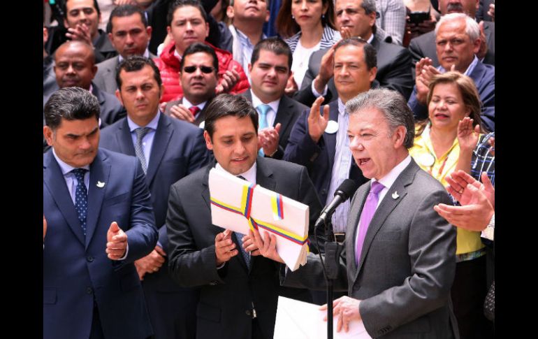 BOGOTÁ, COLOMBIA (25/AGO/2016).- El presidente Juan Manuel Santos anunció el jueves que el cese definitivo del fuego comenzará el 29 de agosto al informar al Congreso su decisión de convocar a un plebíscito sobre los acuerdos de paz alcanzados con las FARC."Como jefe de Estado y como comandante en jefe de nuestras fuerzas armadas he ordenado el cese al fuego definitivo con las FARC a partir de las cero horas del próximo lunes 29 de agosto", dijo Santos.El jefe de Estado entregó al presidente del Senado, Mauricio Lizcano, el texto del acuerdo final firmado por las partes la víspera en La Habana.El plebíscito, que se llevará a cabo el 2 de octubre, necesitará unos 4.5 millones de sufragios de los casi 35 millones de colombianos que están en capacidad de votar para tener validez.Horas antes en la capital cubana, el jefe del equipo negociador del gobierno Humberto De la Calle admitió que sería "catastrófico" para Colombia que el acuerdo de paz no sea aprobado en el plebíscito."Lo que queremos es que ningún colombiano se abstenga de decidir", dijo De la Calle en conferencia de prensa en el último encuentro con periodistas en la mesa de diálogo instalada casi cuatro años atrás entre las Fuerzas Armadas Revolucionarias de Colombia (FARC) y el gobierno de Santos."¿Cuáles son las consecuencias (de una derrota del plebíscito)? A mí me parece que serían catastróficas", agregó."Si este acuerdo se lleva a la realidad, paramos la guerra", comentó por su parte el Alto Comisionado para la Paz, Sergio Jaramillo, en la misma conferencia de prensa en la capital cubana. "Colombia tendrá... una nueva oportunidad", insistió.De la Calle recordó que en el pasado cada vez que se rompió un proceso de paz tomó al menos una década reanudar las negociaciones con el consecuente lastre de violencia y víctimas y un alto costo económico para el país.Aunque aún no hay una fecha precisa para la ceremonia de firma final del acuerdo de paz, De la Calle indicó que será antes del plebíscito."A partir de la firma formal que hará el presidente de la república, en fecha que vamos a convenir, comienza a aplicar el 'Día D' para el comienzo de la desmovilización de la guerrilla... Esa fecha será antes del plebíscito", dijo De la Calle.Se desconoce dónde se llevará a cabo la ceremonia formal que contará con la presencia de Santos y del máximo líder de las FARC, conocido como "Timoleón Jiménez" o "Timochenko" y cuyo nombre real es Rodrigo Londoño.Paralelamente, De la Calle instó a las FARC a que permitan salir a los menores que permanecen en sus filas, una medida de confianza mutua que se había acordado hace algunos meses, y recordó que en la lista de los delitos que no podrán ser amnistiados está el reclutamiento de menores."Todos los niños deben salir de filas (de las FARC), tienen que ser liberados en su totalidad", dijo el ex ministro.De la Calle también defendió la necesidad de que se pague un estipendio a los guerrilleros que se incorporen a la vida civil.La víspera las delegaciones cerraron su proceso negociador que se basó en una agenda de seis puntos: los problemas de la tierra, la participación política, el combate al narcotráfico, el resarcimiento de las víctimas y los mecanismos de verificación de lo convenido.Las negociaciones entre el gobierno de Santos y las FARC comenzaron a fines de 2012 y sobrevivieron muchos obstáculos, desde la detención de militares de alto rango que atravesaban zonas controladas por las FARC a bombardeos sobre campamentos rebeldes.También a la férrea oposición de sectores opositores liderados por el ex presidente Álvaro Uribe y que ahora hacen campaña por el "no" en el plebíscito.