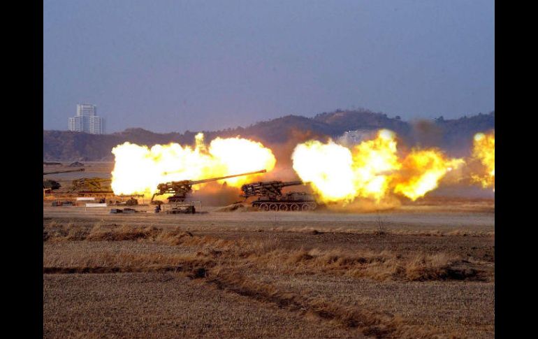 SEÚL, COREA DEL SUR (25/ABR/2017).- Corea del Norte realizó hoy un gran ejercicio con fuego real cerca de la ciudad oriental de Wonsan, en coincidencia con el 85 aniversario de la fundación de su Ejército, según fuentes del Gobierno surcoreano citadas por la agencia local Yonhap.Entre 300 y 400 piezas de artillería de largo alcance habrían tomado parte en este simulacro, que se cree podría ser el mayor ejercicio con fuego real realizado hasta la fecha por Pyongyang, indicó la fuente gubernamental.Unas maniobras de este calibre se antojan como una muestra de fuerza hacia EU y su aliado Corea del Sur, cuya capital, Seúl, y sus zonas aledañas (donde viven unos 20 millones de personas, la mitad de la población del país) quedarían totalmente expuestas a un ataque artillero norcoreano al estar junto a la frontera.El líder norcoreano, Kim Jong-un, habría presenciado además estas maniobras realizadas para conmemorar la fundación del Ejército Popular de Corea, según Seúl.Un portavoz de Defensa surcoreano no pudo confirmar a Efe la ejecución de las mencionadas maniobras, pero subrayó que el ejército "está atento a cualquier posible provocación de las tropas norcoreanas, incluyendo lo que suceda en la zona de Wonsan (donde se llevaron a cabo las prácticas artilleras)".El ejercicio militar norcoreano, así como la efeméride, llegan en un momento de tensión en la región ante los persistentes ensayos armamentísticos de Pyongyang y el creciente temor a que el régimen realice una nueva prueba nuclear que agudice la crisis con EU.Fotografías tomadas recientemente por satélite muestran actividad en el centro de pruebas atómicas de Punggye-ri, en el noreste del país asiático, que hace diez días exhibió en un gran desfile militar lo que parecen ser nuevos misiles balísticos intercontinentales.Pyongyang afirmó el lunes que reforzará sus "medidas nucleares de auto-defensa" tras la orden de Washington de enviar a la península de Corea al portaaviones de propulsión nuclear Carl Vinson en respuesta al lanzamiento de un misil norcoreano a principios de mes.El buque y su flota de ataque se encuentra realizando maniobras junto a las tropas japonesas en el Pacífico, pero tiene previsto aproximarse a la península coreana a finales de esta semana.Las fuerzas armadas de Corea del Norte "responderán con golpes mortales" y contrarrestarán "cualquier intento de guerra total con un ataque nuclear sin piedad", aseguró el régimen.