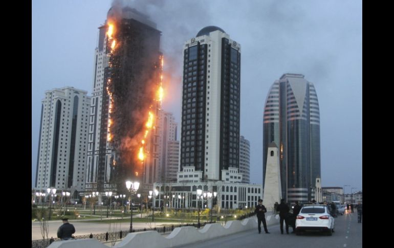 Internacional | Las autoridades locales no reportan heridos, por el momento Rascacielos de 40 plantas arde en la capital de Chechenia El fuego se ha propagado por la fachada de casi todas las plantas del edificio de viviendas, que con 145 metros es el más alto de la ciudad, está inacabado, todavía no alberga residentes Por: EFE 3 de abril de 2013 - 11:18 hs MOSCÚ, RUSIA (03/ABR/2013).- Un rascacielos de 40 plantas se encuentra hoy en llamas en Grozni, capital de la república norcaucasiana rusa de Chechenia, sin que por el momento haya heridos, según las autoridades locales. El fuego se ha propagado por la fachada de casi todas las plantas del edificio de viviendas "Olimp", que con 145 metros es el más alto de la ciudad, está inacabado, todavía no alberga residentes y se encuentra situado en el recién construido barrio de negocios "Grozni-City", informan las agencias locales. Las autoridades han evacuado a una treintena de personas que trabajaban en el inmueble, que, de acuerdo con testigos, está prácticamente cubierto por una densa nube de humo negro. Por el momento, los más de cien bomberos que trabajan en las labores de extinción no han podido sofocar el fuego, que se ha propagado con inusitada virulencia por el revestimiento térmico de la fachada del edificio. Los servicios de emergencia han precisado que el fuego únicamente afecta a la fachada y no al interior del edificio de viviendas. Las escaleras de emergencia de 50 metros de altura sólo permiten a los bomberos alcanzar con las mangueras de agua hasta la planta 27 del "Olimp". Un helicóptero Mi-8 del Ministerio para Situaciones de Emergencia se ha desplazado desde una república vecina de Chechenia para combatir el incendio. El fuego no ha llegado a lo más alto del edificio, donde se encuentra el reloj circular más grande del mundo, de 14 metros de diámetro y que sigue marcando la hora exacta. Sin contar con Moscú, que tiene rascacielos de varios cientos de metros de altura, el "Olimp" es considerado el edificio más alto de Rusia. Construido por una compañía turca, los siete rascacielos de la "Grozni City" -cinco edificios de viviendas, un hotel y un centro de negocios- fueron equipados para soportar terremotos de hasta 9 grados en la escala abierta de Richter. Recientemente, el presidente chechén, Ramzán Kadírov, regaló al actor francés Gerard Depardieu, quien recibió en enero la ciudadanía rusa, un apartamento en uno de los inmuebles adyacentes. "Grozni-City" es el orgullo de las autoridades chechenas, que han reconstruido en unos años una ciudad que estaba en estado prácticamente ruinoso tras las dos cruentas guerras entre el Ejército federal ruso y la guerrilla separatista. En la capital chechena ya se está construyendo la "Grozni-City 2", que incluirá un rascacielos de 300 metros de altura y que será inaugurado en 2016. Temas Europa Incendios Accidentes en el mundo Rusia Lee También Cierran dos tramos de avenida Juárez por caída de un poste y de ramas Sociales: El Informador inicia una nueva etapa con la moderna imprenta "Doña Stella" Bebé sobreviviente a explosión de Iztapalapa comenzará rehabilitación Expo Fire & Safety traerá lo mejor de la tecnología contra incendios a Guadalajara Recibe las últimas noticias en tu e-mail Todo lo que necesitas saber para comenzar tu día Registrarse implica aceptar los Términos y Condiciones
