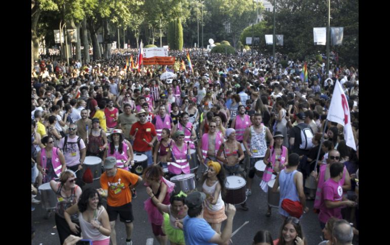 Internacional | Miles de personas abarrotaron una de las arterias principales de la capital de España Realizan desfile del Orgullo Gay en Madrid Miles de personas en tacones altos y pelucas abarrotaron una de las arterias principales de la capital de España Por: AFP 5 de julio de 2014 - 16:59 hs Los asistentes disfrutaron del colorido desfile. EFE / MADRID, ESPAÑA (05/JUL/2014).- Millares de personas en tacones altos, pelucas y con banderas arco iris abarrotaban el sábado las calles de Madrid, en el mayor desfile del Orgullo Gay de Europa. Decenas de miles se agolpaban en una de las arterias centrales de la capital de España, el Paseo del Prado, para disfrutar de un desfile acompañado de ritmos de percusión y silbatos, que se prevé durará unas siete horas. Los organizadores esperan más de un millón de personas durante el desfile de esta noche, el acto central de los cinco días de festejos para defender los derechos de la comunidad LGTB -lesbianas, gays, transexuales y bisexuales. "Organizamos uno de los mejores Orgullos del mundo y es hora de que alcemos la voz por todas las personas que no pueden, que vean que no sufren en soledad", dijo Boti G. Rodrigo, presidenta de FELGTB, una de las organizaciones convocantes junto a la COGAM. "Luchamos por su libertad y por la nuestra (...). Los derechos humanos LGTB son irrenunciables", añadió Rodrigo. La marcha del Orgullo Gay está dedicada este año a las personas discriminadas por su orientación sexual o por su identidad sexual en sus países de origen, donde incluso se enfrentan a la pena de muerte. El festival arrancó el miércoles por la noche con la aparición de Conchita Wurst, la transexual barbuda austríaca que venció el último Festival de Eurovisión y quien actuó el viernes junto a conocidos cantantes españoles en el estadio del Atlético de Madrid, el Vicente Calderón. Uno de los acontecimientos más esperados de estos festejos anuales tuvo lugar el jueves con la carrera de hombres en tacones altos y vestido por las calles de Chueca, el barrio gay de la capital española. "No soy gay, pero a mí me parece bien participar en la defensa de la igualdad", afirmó el ganador de la carrera, Antonio Benito López, de 19 años, proveniente de Ciudad Real, unos 200 kilómetros al sur de Madrid. La policía de Madrid desplegó unos 500 agentes para garantizar la seguridad en las calles de la capital. En el resto de Europa, los actos del Orgullo movilizaron a cientos de miles de participantes. En el manifiesto del Orgullo de Madrid, los organizadores alertan de las amenazas de discriminación planteadas por los grupos de extrema derecha, que han ganado terreno en algunos países europeos. Asimismo, el texto critica que los recortes impuestos por el gobernante Partido Popular (conservador) durante la crisis económica han incrementado la discriminación en el acceso a los servicios públicos y a la sanidad. En 2005, España, que a finales de los años 1970 salió de cuarenta años de dictadura del general Francisco Franco, se convirtió en el tercer país de la Unión Europa en legalizar el matrimonio de personas del mismo sexo, después de Holanda y Bélgica. Temas Europa España Homosexualidad Lee También Activistas lanzan pintura a un cuadro de Cristóbal Colón en museo de Madrid España consigue su boleto a los cuartos de final del Mundial Sub-20 Derrumbe de edificio en Madrid deja cuatro desaparecidos y tres heridos Cuatro imperdibles para tu primera visita a Madrid Recibe las últimas noticias en tu e-mail Todo lo que necesitas saber para comenzar tu día Registrarse implica aceptar los Términos y Condiciones