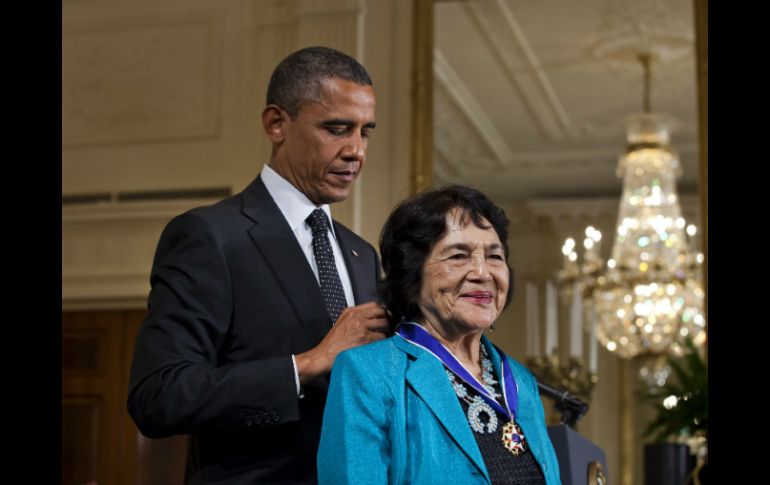 Internacional | Barack Obama entregó el reconocimiento a la activista hispana Recibe Dolores Huerta Medalla de la Libertad Barack Obama entregó el reconocimiento a la activista hispana, junto a otros 12 destacados estadunidenses Por: NTX 29 de mayo de 2012 - 16:11 hs El presidente de EU, Barack Obama, entrega la Medalla de la Libertad a Dolores Huerta. EFE / WASHINGTON, ESTADOS UNIDOS (29/MAY/2012).- La activista social Dolores Huerta recibió hoy de manos del presidente Barack Obama la Medalla de la Libertad, junto a otros 12 destacados estadunidenses, entre ellos diplomáticos, estrellas de la música y una premio Nobel de Literatura. El mandatario calificó a Huerta, al igual que a la poetisa y premio Nobel de la Literatura 1993 Toni Morrison, y al músico Bob Dylan, como tres personas que impactaron de manera particular su vida. "Cada uno en este grupo ha marcado mi vida de una manera profunda", dijo Obama al terminar la presentación de cada uno de los 13 honrados con la máxima presea que el gobierno confiere a un civil. Recordó que años atrás, en Chicago, antes de ingresar a la carrera política, "pensé en Dolores Huerta leyendo sobre ella cuando me inicié como organizador (social)". En 2008, durante su campaña presidencial, "ella fue bastante generosa cuando le dije que había robado su eslogan 'Sí se puede' (Yes we can), y conociéndola, me complace que no me reclamara". Minutos después, la consigna resonó en el Salón Oeste de la Casa Blanca, cuando uno de los nueve hijos de la activista presentes en la ceremonia exclamó: "¡Sí se puede!", en el momento en que Obama impuso la condecoración a la mujer. Huerta, una de las más reconocidas activistas del movimiento chicano, colaboró con el líder César Chávez, quien en 1994 fue honrado por el presidente William Clinton con la medalla de manera póstuma. En 1962, Chávez y Huerta fundaron en California el Sindicato de Trabajadores Agrícolas (UFWA, por sus siglas en inglés) para defender los derechos de los trabajadores en los cultivos de uva en ese estado. En 1998, el entonces presidente Clinton ya había distinguido a Huerta con el Premio Eleanor Roosevelt de los Derechos Humanos. La anterior hispana en ser honrada con la Medalla de la Libertad fue la actriz y bailarina puertorriqueña Chita Rivera, quien la recibió en 2009 de manos del presidente Obama. Junto con Huerta, Dylan y Morrison, fueron galardonados la ex secretaria de Estado Madeleine Albrigth, el ex magistrado de la Suprema Corte de Justicia John Paul Stevens, y el ex astronauta y ex senador demócrata John Glen. También fueron galardonados el abogado John Doar, el médico epidemiólogo William Foege, quien descubrió la vacuna contra la viruela; la entrenadora de basquetbol Pat Summit, y el presidente de Israel Shimon Peres, quien no estuvo presente. Tres nominados más, Gordon Hirabayashi, Jan Karsi y Juliette Gordon Low, fundadora de la Sociedad de las Niñas Exploradoras, fueron honrados con esta medalla de manera póstuma. Temas Norte América Estados Unidos Premios Barack Obama Lee También México y Estados Unidos refuerzan cooperación en seguridad fronteriza ¿Tormenta "Sonia" afectará a Jalisco en los próximos días? Ebrard buscará evitar imposición de aranceles en su visita a EU SAT: ¿Cómo saber si hay servicio tras el paro de trabajadores? Recibe las últimas noticias en tu e-mail Todo lo que necesitas saber para comenzar tu día Registrarse implica aceptar los Términos y Condiciones