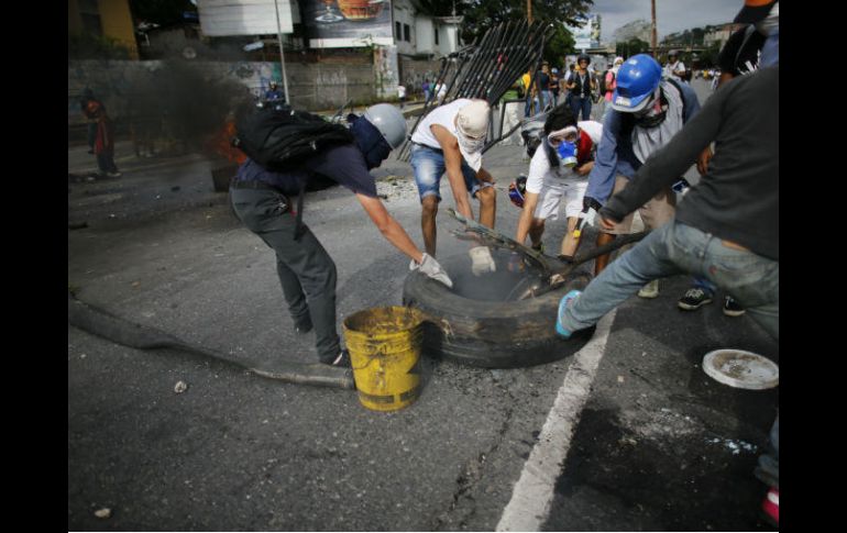 CARACAS, VENEZUELA (15/MAY/2017).- Miles de opositores bloquearon importantes vías de Venezuela, con graves hechos de violencia que dejan una docena de heridos, al entrar este lunes en su séptima semana de protestas para exigir la salida del poder del presidente Nicolás Maduro.Dos policías resultaron heridos de bala, uno en la cabeza, en la ciudad de Valencia (norte) en medio de refriegas, informó en Twitter el gobernador del estado Carabobo, Francisco Ameliach, quien atribuyó el ataque a un francotirador.Un dirigente juvenil también recibió un disparo en el cráneo en la localidad de Colón (estado Táchira, oeste) durante choques con militares, denunció el parlamentario opositor Henry Ramos Allup.Al menos otras diez personas recibieron impactos de perdigón (balas de goma) en enfrentamientos con la Guardia Nacional en Carabobo, Táchira y Mérida.En tanto, unas 35 personas fueron arrestadas, de las cuales 20 en Carabobo y seis en Nueva Esparta, según la ONG Foro Penal. Una diputada suplente, Yanet Fermín, fue detenida durante algunas horas en Margarita.También hubo incidentes menores en Zulia, Aragua y Lara.Tras casi 12 horas, unos pocos opositores permanecían en la neurálgica autopista Francisco Fajardo (este de Caracas), mientras en el oeste las fuerzas de seguridad lanzaron gases lacrimógenos.Maduro enfrenta manifestaciones desde el pasado 1 de abril, que dejan 38 muertos y cientos de heridos y detenidos, de los cuales 159, según Foro Penal, fueron enviados a prisión por orden de tribunales militares.Reunión de la OEALa creciente tensión llevó a que la Organización de Estados Americanos (OEA) aprobara este lunes una cita de cancilleres que evaluará la crisis el 31 de mayo. Caracas, que inició su retiro de la OEA hace dos semanas, rechaza de antemano el encuentro como un acto "injerencista" que busca propiciar una intervención.En el plantón en Caracas, algunos se dedicaron a actividades de esparcimiento como jugar barajas, que alternaron con consignas como "¡Libertad!". Llevaron agua y comida para todo el día."No hay libertad, nos reprimen, no hay comida y cuando hay es extremadamente cara, voy a seguir en las calles hasta que haya cambio", dijo el docente Miguel Martínez.La coalición de partidos Mesa de la Unidad Democrática (MUD) exige elecciones generales para resolver la grave crisis política y económica, que se refleja en una fuerte escasez de comida y medicinas, y la inflación más alta del mundo, que escalaría a 720% este año según el FMI."Hasta que el cuerpo aguante"Los opositores también rechazan la convocatoria del mandatario socialista a una Asamblea Constituyente "popular", con la que, a su juicio, busca evadir elecciones y afianzarse en el poder."Vamos a seguir en la calle hasta que el cuerpo aguante para que Maduro se vaya porque cada vez hunde más al país. Con la Constituyente se profundiza la dictadura", declaró a AFP Alberto Barrios, docente de 28 años.Pero Maduro, cuya gestión es rechazada por siete de cada diez venezolanos según encuestas, asegura que la Constituyente traerá la paz, y el pasado viernes prometió que en 2018 habrá elecciones presidenciales, como ordena la ley.En diciembre último debieron hacerse las de gobernadores, pero fueron pospuestas y aún no tienen fecha, y este año corresponden las de alcaldes.La convocatoria a la Constituyente aumentó la tensión, pues la mitad de los 500 asambleístas serán elegidos por sectores sociales en los que el gobierno ejerce fuerte influencia, lo que pone en duda el "voto universal"."No hay forma de que Venezuela se cale (aguante) esto. Mientras haya dictadura, no va a haber tranquilidad", afirmó el diputado Freddy Guevara, vicepresidente del Parlamento, único poder del Estado controlado por la oposición.La oposición anunció para el próximo miércoles marchas nocturnas, una movilización el jueves en Caracas y concentraciones en todo el país el sábado.Llamados a la calmaLa oposición denuncia una "salvaje represión" por parte de militares y policías, que dispersan con bombas lacrimógenas y chorros de agua a los manifestantes para evitar que lleguen al centro de Caracas.Mientras, Maduro, a quien la Fuerza Armada ha declarado "lealtad incondicional", acusa a sus adversarios de promover "actos terroristas" para darle un "golpe de Estado".El jefe del Parlamento, el opositor Julio Borges, pidió el domingo a la Fuerza Armada abrir un diálogo sobre la crisis y "ponerse del lado del pueblo"."Ellos piden lo imposible (elecciones generales), por ello intensifican la violencia con apoyo de la oligarquía internacional y del imperialismo", aseguró el ministro de Movimientos Sociales, Aristóbulo Istúriz.El gobierno acusa a Estados Unidos de financiar los "actos vandálicos" de la oposición.En tanto, la Unión Europea urgió este lunes a alcanzar una "solución pacífica".