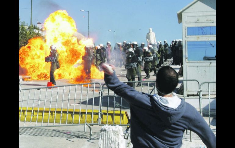 Internacional | Inconformes montan huelga de 48 horas Regresa violencia a Grecia por manifestaciones Alrededor de 100 mil personas se manifiestan en la capital griega contra el proyecto de austeridad Por: AP 20 de octubre de 2011 - 04:19 hs La Policía griega responde a ataques de manifestantes, en Atenas. EFE / ATENAS, GRECIA (20/OCT/2011).- Cientos de jóvenes saquearon tiendas en el centro de Atenas y se enfrentaron con la Policía antimotines durante una manifestación masiva contra dolorosas medidas de austeridad aprobadas preliminarmente el miércoles por el Parlamento. Los disturbios se produjeron en el primer día de una huelga general de 48 horas que paralizó los servicios en gran parte de Grecia, provocando que los vuelos quedaran varados por horas, los transbordadores permanecieran en los puertos y las agencias aduanales, las tiendas y los bancos no operaran. Más de 100 mil personas salieron a las calles de la capital griega para manifestarse contra el proyecto de austeridad, que incluye nuevos aumentos de impuestos, mayores recortes a las pensiones y los salarios, la suspensión con sueldo reducido de 30 mil servidores públicos y la suspensión de los contratos colectivos de trabajo. Los ciudadanos griegos dijeron que ya están muy afectados por más de año y medio de medidas de austeridad. “Ya no podemos soportarlo ni un momento más. Hay desesperación, enojo y amargura”, dijo Nikos Anastasopoulos, jefe de un sindicato de trabajadores en una municipalidad de Atenas, cuando se unía a la manifestación horas antes en el día. Una de las manifestaciones más grandes en años en Atenas se tornó violenta cuando cientos de jóvenes encapuchados arrojaron bombas incendiarias a policías antimotines frente al Parlamento, así como trozos de mármol desprendidos de edificios, estaciones del metro y aceras. La Policía respondió con gases lacrimógenos y granadas de estruendo. Las autoridades dijeron que 50 policías resultaron heridos en los choques, así como al menos tres manifestantes, mientras que 33 personas fueron detenidas para ser interrogadas o arrestadas por presunta participación en los disturbios. Al menos tres periodistas que cubrían los sucesos sufrieron heridas leves. La violencia continuó mucho después de que hubo concluido la manifestación. La Policía corría por las calles en choques con los jóvenes, los cuales establecían barricadas en llamas en las rutas aledañas a la Plaza Syntagma, la principal de Atenas, y cerca del área turística de Monastiraki. Para saberPaís paralizado La huelga general, la quinta en este año y la segunda de 48 horas desde junio pasado, mantiene paralizada todas las actividades en Grecia desde los vuelos y el transporte público hasta escuelas, bancos, tribunales, entre otros. Temas Europa Manifestaciones en el mundo Grecia Recibe las últimas noticias en tu e-mail Todo lo que necesitas saber para comenzar tu día Registrarse implica aceptar los Términos y Condiciones