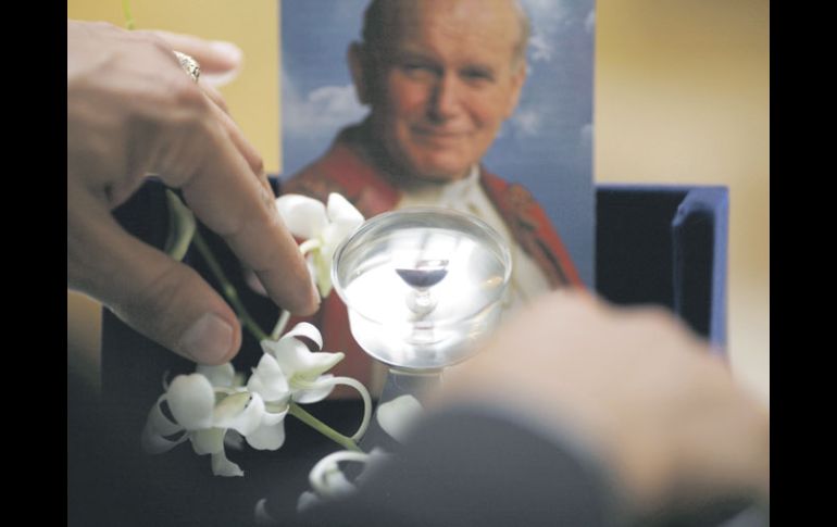 Internacional | Beato Juan Pablo II Reliquias llegan a México Las reliquias son cápsula que contiene sangre del Papa, objetos personales y vestimentas Por: EL INFORMADOR 19 de agosto de 2011 - 03:03 hs CIUDAD DE MÉXICO (19/AGO/2011).- El obispo de Campeche, Ramón Castro Castro, consideró como un regalo para México la llegada de las reliquias del beato Juan Pablo II, que en Campeche estarán el próximo 30 de septiembre. Indicó que las reliquias llegarán procedentes de Villahermosa, Tabasco, permanecerán un día en Campeche, para después dirigirse a Mérida, el primero de octubre, y aunque dijo no tener un estimado del número de personas que acudan a visitarlo, éste será significativo. Reiteró que la presencia de las reliquias o el sexto “viaje” de Juan Pablo a México son una bendición y una oportunidad para crecer en la fe y la unidad de la Iglesia Católica, y destacó que se eligió a este país por el ser el primero de sus viajes internacionales. Las reliquias consisten en una cápsula que contiene sangre del Papa, vestimentas y objetos personales que se presentaron durante su beatificación. Temas América Latina Juan Pablo II Recibe las últimas noticias en tu e-mail Todo lo que necesitas saber para comenzar tu día Registrarse implica aceptar los Términos y Condiciones