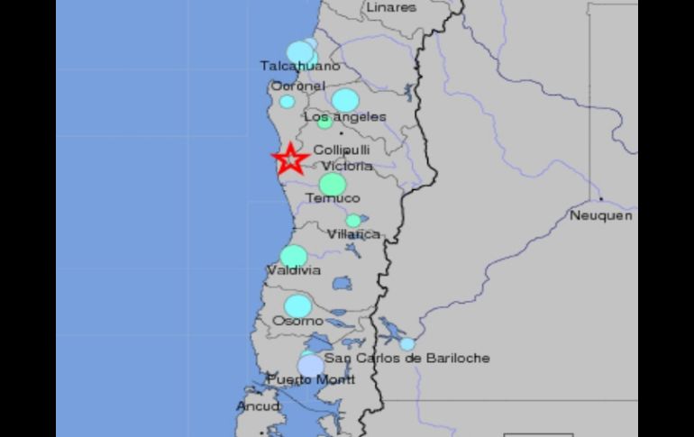 Internacional | El epicentro se ubicó a 69 kilómetros de la ciudad de Temuco, Chile Reportan sismo de 7.1 en la región chilena de la Araucania El epicentro se ubicó a 69 kilómetros de la ciudad de Temuco, Chile Por: EL INFORMADOR 2 de enero de 2011 - 13:44 hs Mapa de la ubicación del epicentro proporcionado por el Servicio Geológico de Estados Unidos. ESPECIAL / CHILE (02/ENE/2011).- A las 17:20 horas del sábado, el Sevicio Geológico de Estados Unidos (USGS) reportó un sismo de 7.1 grados de magnitud en escala Richter en al región de la Auracania en Chile. El epicentro se ubicó a 69 kilómetros de la ciudad de Temuco y a unos 589 kilómetros de Santiago, la capital chilena. Las comunidades donde se sintió con mayor intensidad fueron Laja, San Rosendo, Chiguayante, Concepción, San Pedro de la Paz y Talcahuano. A pesar de que el movimiento telúrico tuvo lugar cerca de la costa central de Chile, los informes oficiales descartan por el momento cualquier alerta de tsunami. Más información en instantes... Temas América Latina Sismos Chile Recibe las últimas noticias en tu e-mail Todo lo que necesitas saber para comenzar tu día Registrarse implica aceptar los Términos y Condiciones
