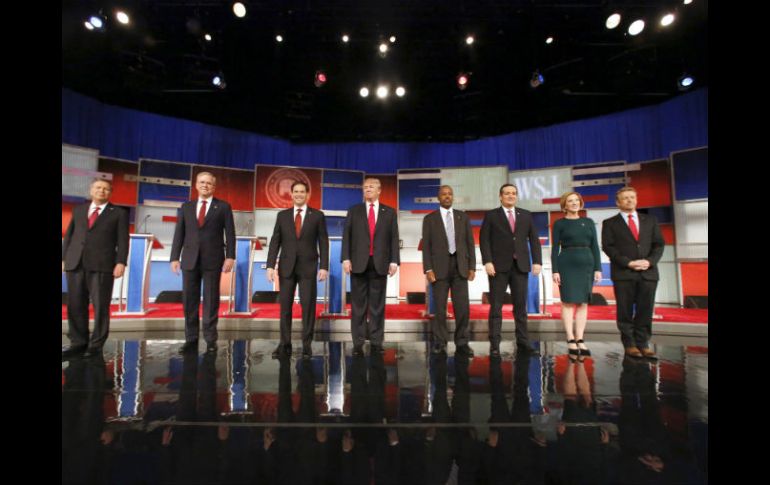 Internacional | Los precandidatos suben a la tarima a menos de tres meses del inicio de las primarias Republicanos se enfocan en economía durante cuarto debate Los aspirantes a la Casa Blanca suben a la tarima a menos de tres meses del inicio de las primarias Por: AFP 10 de noviembre de 2015 - 22:00 hs Los ocho precandidatos mejor posicionados protagonizan el debate estelar; otros cuatro tuvieron un debate más temprano. AP / J. Phelps MILWAUKEE, ESTADOS UNIDOS (10/NOV/2015).- Los aspirantes republicanos a la Casa Blanca arrancaron este martes el cuarto debate, con el magnate Donald Trump y el médico Ben Carson a la cabeza, pero otros candidatos subrayaron que la verdadera adversaria era la puntera demócrata Hillary Clinton. Los ocho precandidatos mejor posicionados de los 15 en liza por la nominación del Partido Republicano, subieron a la tarima poco despuésen Milwaukee, a poco menos de tres meses del inicio de las primarias: 1 de febrero en Iowa y el 9 de ese mes en New Hampshire. "Este es un país que está siendo golpeado en cada frente, económicamente, militarmente, no hay nada que hacemos ahora para ganar", lanzó Trump, el millonario de bienes raíces, que junto con Carson capitaliza un ambiente político saturado de rabia populista. La noche empezó sin drama ni ataques personales. Carson y Trump anunciaron que se oponen a un incremento del salario mínimo. Otros cuatro candidatos -que apenas figuran en los sondeos- protagonizaron otro debate más temprano. "Hillary Clinton viene por tu billetera, todo el mundo (...) preocúpense por ella", lanzó el gobernador de New Jersey, Chris Christie, llamando a la aspirante demócrata "la verdadera adversaria" de la noche. Este ex fiscal federal se destacó de sus contrincantes del 'pequeño debate', Bobby Jindal, Rick Santorum y Mike Huckabee, con un ataque contra Clinton y el presidente Barack Obama, amenazando, de llegar a la Casa Blanca, con hacer sobrevolar el avión presidencial AirForce One sobre las islas artificiales construidas por Pekín en el Mar de China. A un año de la elección general, los 'outsiders' disfrutan de su momento. Carson, el apacible neurocirujano y Trump, -ninguno ha ocupado nunca un cargo público-, reciben la mitad de la intención de voto de los republicanos. Detrás le siguen los senadores Marco Rubio y Ted Cruz, dos cuarentones de origen cubano, opositores a la reforma migratoria, que han sabido aprovechar los anteriores duelos para destacarse y ganar notoriedad. "La mejor forma de hacer a Estados Unidos mejor (...) es con una reforma fiscal, reforma regulatoria y poner nuestra deuda bajo control", dijo Rubio, llamando a acabar con el Obamacare, el programa de salud del presidente demócrata que los republicanos aman odiar. Temas Norte América Estados Unidos Republicanos Donald Trump Elecciones en Estados Unidos Lee También México se prepara para recibir un nuevo frente frío este sábado "Raymond" se encamina a tierra; aquí su trayectoria de hoy El precio de la paz en Gaza Lluvias dejan 29 muertos en un día en México Recibe las últimas noticias en tu e-mail Todo lo que necesitas saber para comenzar tu día Registrarse implica aceptar los Términos y Condiciones