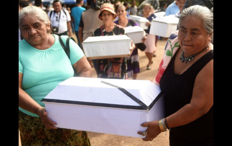 SOCIEDAD, EL SALVADOR (11/DIC/2016).- Con lágrimas en los ojos y el recuerdo de un pasado sangriento, familiares de 20 víctimas de la masacre de El Mozote, perpetrada en diciembre de 1981 en El Salvador, en el marco de la guerra civil, cerraron hoy un duro capítulo de sus vidas con el entierro de las osamentas de quienes fueron asesinados 35 años atrás.Un largo periplo de búsqueda, petición de justicia, protestas ante las autoridades competentes y todo un cúmulo de vicisitudes, finalizaron este domingo, cuando los huesos y sus respectivas pruebas de ADN fueron enterradas en pequeños ataúdes blancos, ya sin manchas de la sangre derramada que todavía continúa ensuciando la memoria.Llegó la hora del descanso eterno y la posibilidad de que familiares y amigos puedan visitar las pequeñas tumbas de las víctimas del conflicto, con la certeza de que son ellos, sus padres, hijos, primos o sobrinos, quienes descansan a los pies de un pequeño monumento construido para la ocasión en el cantón La Joya, municipio de Sociedad.Pese a que los hallazgos de los huesos, los análisis de ADN y los entierros son un paso más en este largo camino, los allegados continúan clamando justicia que, según ellos, no llegará hasta que los verdaderos culpables de la barbarie, tanto intelectuales como materiales, paguen su culpa.Los restos mortales a lo que este domingo se dio cristiana sepultura fueron exhumados durante el año 2015 en diversos puntos de la zona de El Mozote, donde un batallón del Ejército perpetró la masacre, según el Informe de la Comisión de la Verdad de las Naciones Unidas.Entre el 10 y el 13 de diciembre de 1981 unidades de elite del Batallón Atlacatl torturaron y ejecutaron "deliberada y sistemáticamente" a niños, hombres y mujeres del cantón El Mozote y otros aledaños, concluyó dicho informe.Durante los 12 años de guerra, en los que se enfrentaron la guerrilla del Frente Farabundo Martí para la Liberación Nacional (FMLN), ahora en el poder como partido político, y el Ejército de este país, financiado por Estados Unidos, murieron unas 75 mil personas y desaparecieron otras 8 mil.En 1992, el EAAF exhumó unos 400 cuerpos, principalmente de niños, de las cerca de mil víctimas civiles que se calcula fueron asesinadas por el Ejército. El penúltimo capítulo de una larga etapa puso su punto final tras el entierro con cánticos y rezos de despedida a padres, hermanos, hijos, tíos y tías injustamente asesinados la noche de aquel diciembre.