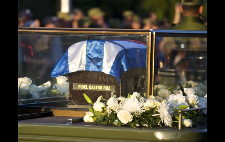 LA HABANA, CUBA (30/NOV/2016).- Las cenizas de Fidel Castro reposarán esta noche en Santa Clara, en el mausoleo donde yacen los restos de su compañero de batalla Ernesto "Che" Guevara, en su trayecto por Cuba desde La Habana hasta Santiago, donde serán sepultados.Las cenizas del líder de la revolución cubana salieron este miércoles temprano de la sede de las Fuerzas Armadas, en una urna de madera de cedro, en un convoy que se traslada por la Carretera Central, rumbo a Santiago de Cuba, 900 kilómetros al oriente de La Habana.Miles de pobladores, portando banderas cubanas, se apostaron a la vera del camino desde la madrugada a la espera de vitorear a quien por 47 años gobernó la más grande de las islas de las Antillas.La marcha pasó por Matanzas y Cárdenas antes de mediodía, así como por varias localidades intermedias, antes de proseguir su camino hacia Cienfuegos, desde donde se dirigía esta noche hacia Santa Clara, donde la urna reposará en el Complejo Escultórico Ernesto Guevara.En el mausoleo al Che se rendirá tributo a Fidel Castro con una ceremonia militar y una cantata protagonizada por jóvenes, que se extenderá hasta la madrugada del jueves.En la mañana del jueves 1 de diciembre, las cenizas del comandante revolucionario serán trasladadas a la provincia de Sancti Spíritus.Los restos de Castro, quien falleció a los 90 años de edad, serán enterrados el domingo en el cementerio de Santa Ifigenia, previo a un acto masivo de despedida programada para la noche del sábado en la santiaguera Plaza Antonio Maceo.
