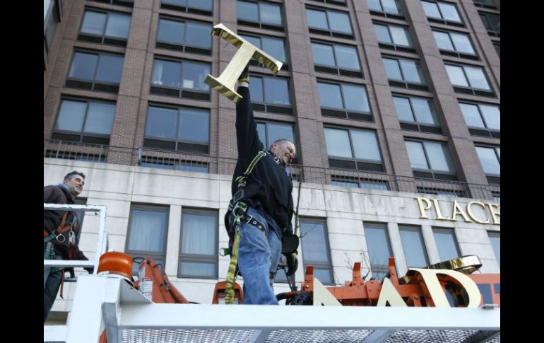 NUEVA YORK, ESTADOS UNIDOS (17/NOV/2016).- Los trabajadores removieron el miércoles las letras doradas de un metro de altura que los distinguía como "Trump Place".En algunos sitios, aún se reconocían las sombras del viejo nombre. Los trabajadores tallaron y lavaron con potentes chorros de agua los lugares donde habían estado las letras.La nueva señalización muestra las direcciones correspondientes de los edificios.Cientos de residentes habían firmado una petición para retirar el nombre, luego de que se diera a conocer una grabación en la que Trump se jactaba de besar mujeres sin su consentimiento.La compañía con sede en Chicago que compró los edificios en 2005, dijo que el objetivo era una "identidad residencial neutral". El presidente de Equity Residencial, Sam Zell, dijo al The New York Times que la solicitud de los inquilinos "no fue factor en la decisión".
