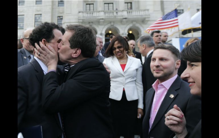 Internacional | Se convirtió en el décimo estado de EU en autorizar esta unión Rhode Island aprueba matrimonio homosexual El gobernador Lincoln Chafee firmó el proyecto de ley adoptado por la asamblea legislativa por 56 votos a favor y 15 en contra Por: AFP 2 de mayo de 2013 - 18:32 hs El matrimonio gay es legal ahora en diez de los 50 estados y en la capital Washington. AP / NUEVA YORK, ESTADOS UNIDOS (02/MAYO/2013) - Rhode Island se convirtió el jueves en el décimo estado de EU en autorizar el matrimonio homosexual, que a partir de ahora ya es legal en todo el noreste del país, una región tradicionalmente progresista. El gobernador Lincoln Chafee, ex republicano devenido independiente, firmó el proyecto de ley adoptado por la tarde en la asamblea legislativa por 56 votos a favor y 15 en contra. "Es un día verdaderamente histórico para nuestro Estado", declaró Chafee tras la votación en la capital Providence, destacando la "tolerancia" de este pequeño estado muy católico. El Senado de Rhode Island había votado a favor del proyecto (26 a 12) el pasado 25 de abril. La nueva ley entrará en vigor el próximo primero de agosto. Las parejas homosexuales ya podían casarse legalmente en el resto del noreste del país: Massachusetts (desde mayo de 2004), Connecticut (noviembre de 2008), Vermont (septiembre de 2009), New Hampshire (enero de 2010), Nueva York (julio 2011) y Maine (noviembre de 2012). En total, el matrimonio gay es legal ahora en diez de los 50 estados y en la capital Washington. En cambio, treinta estados han aprobado enmiendas a sus constituciones que definen el matrimonio como la unión entre un hombre y una mujer. De su lado, el gobierno federal prohíbe de hecho la unión de parejas del mismo sexo, como lo estipula la Ley Federal de Defensa del Matrimonio (DOMA). Sin embargo, el presidente Barack Obama expresó en mayo de 2012 su apoyo al matrimonio gay y en enero pasado, en su discurso de toma de posesión de su segundo mandato, instó explícitamente a defender los derechos de los homosexuales. El debate ha llegado a la Suprema Corte estadounidense, la más alta instancia judicial del país, que tiene previsto pronunciarse hacia junio sobre dos casos, uno vinculado a la prohibición del matrimonio homosexual en California (oeste) y otro relacionado con la ley DOMA. Temas Norte América Estados Unidos Matrimonio homosexual Lee También Plaga Osbornellus salsus: ¿Qué es y dónde fue identificada? Que siempre no: el Villarreal vs Barcelona no se jugará en EU Asesinan a maestra en Oaxaca presuntamente por una calificación Llega "Melissa" al Atlántico; esta es la trayectoria de la tormenta Recibe las últimas noticias en tu e-mail Todo lo que necesitas saber para comenzar tu día Registrarse implica aceptar los Términos y Condiciones