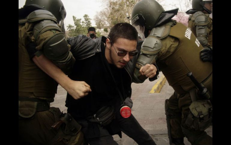 Internacional | Conmemoración del golpe de Estado a Salvador Allende Saldo final de 280 detenidos y 45 heridos tras los disturbios del domingo en Chile Conmemoración del golpe de Estado a Salvador Allende Por: EL INFORMADOR 13 de septiembre de 2011 - 03:16 hs Unas 10 mil personas conmemoraron a los opositores muertos tras el golpe militar del 11 de septiembre de 1973. ARCHIVO / SANTIAGO DE CHILE (13/SEP/2011).- Una menor en estado crítico, cuatro civiles y 40 policías lesionados, así como 280 personas detenidas, dejaron los disturbios registrados dentro del 38 aniversario del golpe de Estado que instaló en Chile la dictadura de Augusto Pinochet y que derrocó al presidente Salvador Allende, informó el Gobierno. El subsecretario del Interior, Rodrigo Ubilla, expuso que los desórdenes comenzaron la víspera, se agudizaron tras la marcha de miles de personas desde el centro de Santiago al Memorial de los Detenidos Desaparecidos, en el Cementerio General el domingo, y se extendieron por la noche en 350 puntos de la ciudad. “Tuvimos una noche intranquila, fueron más de 350 los lugares donde se produjeron barricadas, y cortes de calle”. La marcha en la que participaron unas 10 mil personas conmemoró a los opositores muertos tras el golpe militar del 11 de septiembre de 1973, encabezado por el general Augusto Pinochet. La dictadura dejó 40 mil víctimas. El evento fue pacífico, pero al llegar al Memorial aparecieron grupos de encapuchados que lanzaron piedras, botellas y bombas incendiarias a la Policía, la cual los contuvo con chorros de agua. Tras la trifulca hubo cortes en el suministro eléctrico que afectaron unos 130 mil hogares. En tanto, una menor de 15 años fue baleada en el tórax mientras estaba en la calle en compañía de familiares. Fue operada en la madrugada y su estado es crítico. Entre los 40 policías heridos, los más delicados son un sargento que presenta un trauma ocular producto de una pedrada y un teniente que recibió más de 40 perdigones. Ubilla culpó de los incidentes a “grupos organizados, de lumpen, anárquicos”, que actúan luego de manifestaciones de expresión ciudadana tranquilas y llamó a que toda la sociedad chilena condene en forma conjunta este tipo de hechos. “El país no resiste más este tipo de situaciones”, dijo el subsecretario al tiempo de pedir a padres de familia, maestros, estudiantes y políticos a “llamar a la lógica, a que vuelva la cordura”. Presionan a PiñeraEstudiantes entregan peticiones SANTIAGO DE CHILE.- Los estudiantes universitarios entregaron una misiva con las garantías que demandan al gobierno del presidente Sebastián Piñera al jefe de gabinete del ministro de Educación, Felipe Bulnes. Entre las garantías están el no envío al Congreso de proyectos de ley relacionados con la educación, que las negociaciones se transmitan en directo por televisión o vía internet, que se anule el plazo del 7 de octubre para cerrar el semestre académico y que el Estado no entregue recursos a las universidades que lucran con ellos. Los universitarios exigen el fin del lucro en la educación, enseñanza gratuita, igualitaria y de calidad y mayores aportes para el sector. Los secundarios también presionan porque sus colegios sean administrados por el Estado. Tras cuatro meses de movilizaciones el conflicto estudiantil afronta un momento crucial. Temas América Latina Chile Manifestaciones en el mundo Recibe las últimas noticias en tu e-mail Todo lo que necesitas saber para comenzar tu día Registrarse implica aceptar los Términos y Condiciones