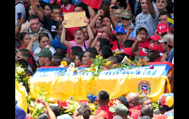 Internacional | Venezuela acompaña junto con Chile, las negociaciones de paz con las FARC Santos estará presente en el funeral de Chávez El gobernante colombiano viajará a la capital venezolana una vez que cumpla compromisos de su agenda Por: NTX 6 de marzo de 2013 - 13:58 hs Partidarios del fallecido presidente venezolano Hugo Chavez ven pasar su ataúd. EFE / BOGOTÁ, COLOMBIA (06/MAR/2013).- El presidente de Colombia, Juan Manuel Santos, se unirá al grupo de mandatarios que asistirán a las honras fúnebres del jefe de Estado venezolano, Hugo Chávez, este viernes en Caracas, informó la emisora Caracol. El gobernante viajará a la capital venezolana una vez que cumpla compromisos de su agenda, para dar el último adiós a quien se considera el artífice del proceso de paz con las Fuerzas Armadas Revolucionarias de Colombia (FARC). Santos lamentó el martes el fallecimiento de Chávez, como consecuencia del cáncer que lo afectó durante dos años y aseguró que "el mejor tributo que podemos rendirle a su memoria es cumplir con el sueño de ver a Colombia en paz". Venezuela acompaña junto con Chile, las negociaciones de paz que sostienen desde noviembre pasado en Cuba el gobierno y la guerrilla de las FARC, para poner fin a medio siglo de conflicto armado interno en Colombia. Santos se unirá a varios presidentes latinoamericanos que ya llegaron a Caracas, entre ellos los jefes de Estado de Bolivia, Evo Morales; de Uruguay, José Mujica; y de Argentina, Cristina Fernández, informó la radiodifusora local. En las próximas horas, también arribarán a la capital venezolana para dar su último adiós a Chávez, cuyo cuerpo fue trasladado a la Academia Militar de Caracas, los mandatarios de Brasil, Dilma Rousseff, y de Perú, Ollanta Humala. Temas América Latina Venezuela Hugo Chávez Juan Manuel Santos Recibe las últimas noticias en tu e-mail Todo lo que necesitas saber para comenzar tu día Registrarse implica aceptar los Términos y Condiciones
