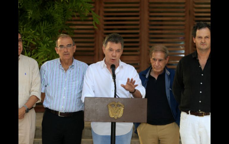 Internacional | Señala que la sesión no se levantaría hasta que se llegue al final del proceso de paz Santos propone sesión permanente con las FARC El mandatario colombiano señala que la sesión no se levantaría hasta que se llegue al final del proceso de paz Por: NTX 7 de enero de 2016 - 19:58 hs Santos preside una cumbre de dos días con el equipo negociador para analizar nuevas estrategias. EFE / R. Maldonado BOGOTÁ, COLOMBIA (07/ENE/2016).- El presidente colombiano Juan Manuel Santos anunció hoy que buscará una sesión permanente de trabajo entre los negociadores del gobierno y las rebeldes Fuerzas Armadas Revolucionarias de Colombia (FARC) para alcanzar la paz. "Lo que vamos a tratar de poner en marcha es una sesión permanente, cuando regresen el próximo 12 de enero a La Habana" los negociadores de ambas partes, abundó el mandatario. Dijo que "no nos levantaremos" de esa sesión permanente que se pretende crear en La Habana "hasta que lleguemos al final de este proceso y hayamos acordado todos los puntos que todavía queda por resolver", apuntó. Las declaraciones de Santos tuvieron lugar en Cartagena, donde preside una cumbre de dos días con el equipo negociador del gobierno para analizar nuevas estrategias a fin de acelerar la firma de un Acuerdo General de Paz con el grupo insurgente. Los negociadores prevén nuevas sesiones a partir del próximo 12 de enero en La Habana, y entre los objetivos prioritarios destaca la instalación de una sesión permanente entre las partes hasta que se acuerden todos los puntos pendientes. "Vamos a seguir trabajando el día de hoy y todo el día de mañana. Son muchos temas que quedan todavía por aclarar, por resolver, por planear", señaló Santos al entregar un reporte de la primera jornada de la cumbre. Explicó que el encuentro revisa "muy bien los diferentes pasos para llegar lo más pronto posible al fin del conflicto, llegar a acuerdos lo más pronto posible con las FARC". Por eso, consideró, "es importante revisar todos los escenarios y tener claro cuáles son los pasos que vamos a seguir". En la reunión también participaron los delegados plenipotenciarios del equipo negociador del gobierno, los comandantes de las Fuerzas Militares y de Policía, los Ministros del Interior, Defensa y Posconflicto. De igual forma tomaron parte la ministra de la Presidencia y asesores nacionales e internacionales en materia de paz y posconflicto. Temas América Latina FARC Colombia Juan Manuel Santos Lee También NETFLIX: En esta fecha llega la serie documental de Juan Gabriel Hispanoamérica celebra el alto al fuego en Gaza y pide compromiso por la paz Celebran a los danzantes en su día como símbolo de la riqueza cultural Selección Mexicana | James Rodríguez sobre el Tricolor: "Hablan mucho" Recibe las últimas noticias en tu e-mail Todo lo que necesitas saber para comenzar tu día Registrarse implica aceptar los Términos y Condiciones