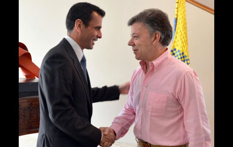 Internacional | Los políticos hablaron de paz y de la crisis política en el vecino país Santos recibe en privado a Capriles para hablar de Venezuela El líder opositor se niega a reconocer el triunfo de Maduro por supuestas irregularidades en el proceso electoral que le dio la victoria por estrecho margen al candidato del chavismo Por: NTX 29 de mayo de 2013 - 13:10 hs El presidente de Colombia, Juan Manuel Santos y el líder opositor venezolano, Henrique Capriles, se reunieron en Bogotá. ARCHIVO / BOGOTÁ, COLOMBIA (29/MAY/2013).- El presidente de Colombia, Juan Manuel Santos y el líder opositor venezolano, Henrique Capriles, se reunieron en Bogotá, en un encuentro en el que hablaron de paz y de la crisis política en el vecino país. La reunión, que duró más de una hora en la presidencial Casa de Nariño, hace parte de la agenda de actividades que cumplirá el ex candidato presidencial de Venezuela en Bogotá, donde dialogará con directivas del Senado y la Cámara. Medios locales informaron que en el encuentro entre Santos y Capriles, se abordó la propuesta que se puso a consideración de la Unión de Naciones Suramericanas (Unasur) sobre un reconteo de votos de las elecciones que ganó Nicolás Maduro. El líder opositor se niega a reconocer el triunfo de Maduro por supuestas irregularidades en el proceso electoral que le dio la victoria por estrecho margen al candidato del chavismo en Venezuela, el 14 de abril pasado. "Aunque no se dieron declaraciones, se supo que Capriles expuso a Santos los escenarios que a juicio de la oposición venezolana serían mejor para el proceso de paz con las FARC, si (la oposición) retorna al gobierno vecino", indicó el diario El Tiempo. Venezuela acompaña, junto a Chile, las negociaciones que sostienen el gobierno de Santos y las rebeldes Fuerzas Armadas Revolucionarias de Colombia (FARC) en Cuba, para poner fin a medio siglo de conflicto armado interno. El periódico señaló en su edición digital, que Santos "evitó dar una opinión sobre alguno de los temas expuestos por el líder opositor venezolano, pero junto a su Canciller (María Ángela Holguín), escuchó con atención sus argumentos". Capriles tiene previsto visitar el Congreso colombiano en la tarde de este miércoles, donde sus directivas autorizaron su intervención en el plenario, así como reunirse con venezolanos residentes en Colombia, según su agenda. Temas América Latina Venezuela Chile Juan Manuel Santos Lee También Venezuela Cruz Azul vs. América: La Máquina remonta y se queda con el clásico joven Cruz Azul vs América • Momentos Destacados • Jornada 13 • Apertura 2025 ¿Empate entre Cruz Azul y América? Esto pronostica la IA Recibe las últimas noticias en tu e-mail Todo lo que necesitas saber para comenzar tu día Registrarse implica aceptar los Términos y Condiciones