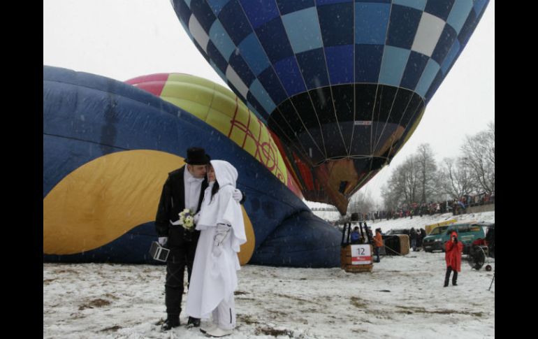 Internacional | A bordo de 30 globos surcaron los aires durante el festival Love Cup Se casan 50 parejas letonas a bordo de globos aerostáticos A bordo de 30 globos surcaron los aires durante el festival Love Cup Por: AP 14 de febrero de 2016 - 20:54 hs Los globos fueron anclados a vehículos ya que el clima les impidió elevarse. EFE / V. Kalnina JEKABPILS, LETONIA (14/FEB/2016).- Medio centenar de parejas letonas contrajeron nupcias en pleno vuelo durante el Día de San Valentín con la esperanza de romper un récord mundial de bodas simultáneas a bordo de globos aerostáticos. Las 50 parejas a bordo de 30 globos surcaron los aires durante el festival Love Cup, cerca de la ciudad suroriental de Jekabpils, mientras eran seguidas por miles de espectadores, pero los globos fueron anclados a vehículos debido a que había una nevada en ese momento, que les impidió una elevación superior a los 15 metros. No quedó esclarecido de momento si la ceremonia calificó para un ingreso en el Libro Guinness de Récords Mundiales como la mayor cantidad de bodas simultáneas a bordo de globos aerostáticos. El evento fue seguido por observadores independientes, incluyendo un representante de Guinness, a quien no se le pudo contactar en busca de comentarios. Temas Europa Matrimonios Día del amor y la amistad Curiosidades Pareja Lee También Cardenal llama a honrar a santos y difuntos por el Día de Muertos Día de Muertos: ¿Qué beneficios tiene beber té de cempasúchil? Cómo combatir los incómodos síntomas del jetlag de los viajes Día de Muertos: ¿Qué significan los huesitos y bolitas del pan de muerto? Recibe las últimas noticias en tu e-mail Todo lo que necesitas saber para comenzar tu día Registrarse implica aceptar los Términos y Condiciones