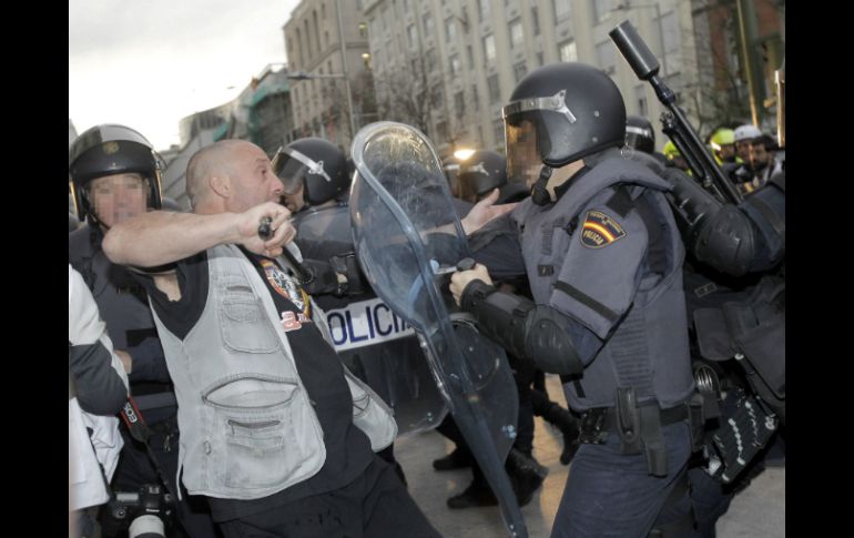 Internacional | Los protestantes lanzaron botellas y petardos contra los antidisturbios Se enfrentan manifestantes y policía en Madrid Los protestantes lanzaron botellas y petardos contra los antidisturbios, a lo que la policía respondió con golpes de porra Por: AFP 25 de abril de 2013 - 16:33 hs MADRID, ESPAÑA (25/ABR/2013).- Manifestantes y policía protagonizaron enfrentamientos este jueves por la noche en Madrid al término de una protesta frente a la cámara baja del Parlamento español convocada en las redes sociales bajo la consigna "Asedia el Congreso". Equipada con cascos y escudos, la policía cargó a golpes de porra contra los manifestantes después de que varias decenas de ellos lanzasen botellas, petardos y bengalas contra los antidisturbios, comprobó una periodista de la AFP. Tras la carga, los manifestantes se dispersaron concentrándose por pequeños grupos en otros puntos del centro de la ciudad, donde siguieron lanzando piedras a los agentes. Otros se reunieron en la cercana Estación de Atocha, perseguidos por la policía, que cargó de nuevo contra algunos jóvenes. Los incidentes, que se saldaron con 29 heridos leves, 13 de ellos policías, se produjeron al término de una protesta que había congregado entre mil y dos mil personas, en su mayoría jóvenes, convocadas por una coordinadora que llamó a la "rebelión popular" y a la ocupación del lugar hasta que dimita el gobierno español y se disuelvan las Cortes. Un imponente dispositivo policial de mil 400 agentes había sido desplegado para esta protesta, de la que se habían desvinculado las principales organizaciones englobadas en el movimiento social de protesta conocido como 'los indignados'. Durante la manifestación la policía detuvo a 15 personas, entre ellos un menor de nacionalidad ecuatoriana que, según un portavoz, llevaba en su mochila "un rollo de papel de aluminio, un petardo de 15 cm, un bandera anarquista con un palo de hierro, un bote de ácido y una bolsa con piedras". En su teléfono móvil tenía "instrucciones para la guerrilla urbana y para la fabricación de McGyver que es como una especie de cóctel molotov", precisó. Congregados inicialmente en tres puntos del centro de Madrid, los manifestantes convergieron hacia la plaza de Neptuno, frente al Congreso, fuertemente protegido. Gritaban "¡Basta ya de Estado policial!", "No tenemos miedo" o "vosotros, fascistas, sois los terroristas". "No estoy de acuerdo con la política que hace el gobierno de España, está sujeto a las políticas del Banco Central Europeo, a quien no hemos votado", lanzaba Lorena Pérez, una desempleada de 29 años del sector de la comunicación. "No están luchando por nuestros intereses, están defendiendo los intereses de la banca y de Alemania", agregaba. "He venido para defender nuestros derechos", afirma Jesús Seguera, un empleado de la construcción "Es una combinación de cosas", agrega. "Ellos no cumplen sus programas electorales", dice, señalando al Congreso. "En mi casa está afectando el paro", afirmaba mientras otros enarbolaban pequeñas pancartas en las que podía leerse "6.2 millones de razones", recordando el número récord de desempleados en el país, anunciado este mismo jueves. Pocas horas antes de la protesta, la policía había detenido a un total de 15 personas en la capital española. Cuatro jóvenes "integrantes de grupos anarquistas" habían sido detenidos por la mañana cuando "pretendían provocar incendios en la capital", según el ministerio de Interior. La policía había detenido también a 11 personas que se habían encerrado en un edificio de la Universidad Complutense de Madrid. Esta manifestación se produce en un contexto de profunda crisis social en España, con un desempleo que acaba de superar los seis millones de personas, un 27.16 por ciento de la población activa. Temas Europa España Manifestaciones en el mundo Recibe las últimas noticias en tu e-mail Todo lo que necesitas saber para comenzar tu día Registrarse implica aceptar los Términos y Condiciones