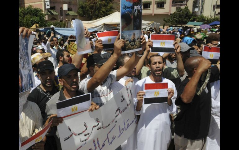 Internacional | Cerca de 10 mil personas denuncian la ''represión armada'' egipcia Se manifiestan en Marruecos en apoyo a islamistas egipcios Cerca de 10 mil personas denuncian la ''represión armada'' egipcia Por: AFP 18 de agosto de 2013 - 17:38 hs Integrantes del movimiento islamista Justicia y Beneficencia se manifiestan a favor del depuesto presidente Morsi. EFE / RABAT, MARRUECOS (18/AGO/2013).- Cerca de 10 mil personas se manifestaron este domingo en la capital marroquí, Rabat, para denunciar la "represión armada" egipcia y pidieron la "expulsión" del embajador de Egipto. La muchedumbre -entre cinco mil y seis mil según las autoridades y 15 mil según los organizadores - estaba integrada mayoritariamente por hombres aunque también había algunas familias procedentes de todo el reino, desfiló tranquilamente durante dos horas en el centro de la capital. Algunos enarbolaban pancartas contra el golpe militar, así como fotos de los cuerpos alineados en las morgues improvisadas de El Cairo. "¡Morsi, Morsi! ¡Dios es grande!", "exigimos la expulsión del embajador de Egipto en Marruecos", gritaron los manifestantes, bajo la mirada de las fuerzas del orden, que no intervinieron. El movimiento islamista Justicia y Beneficencia, prohibido pero tolerado en Marruecos, que aboga por la instauración de un estado islamista, convocó la manifestación nacional. Unas 500 personas se habían manifestado el viernes en Rabat para exigir "la suspensión inmediata de crímenes" en Egipto. Las autoridades marroquíes, que en el golpe militar que derrocó a Mohamed Morsi el 3 de julio, el primer presidente democráticamente elegido en Egipto, adoptaron una actitud neutra, el miércoles manifestaron su "emoción" y su "consternación" por los centenares de muertos que dejó la dispersión por el ejército de dos campamentos de islamistas en la capital egipcia. Temas África Egipto Manifestaciones en el mundo Marruecos Mohamed Morsi Recibe las últimas noticias en tu e-mail Todo lo que necesitas saber para comenzar tu día Registrarse implica aceptar los Términos y Condiciones
