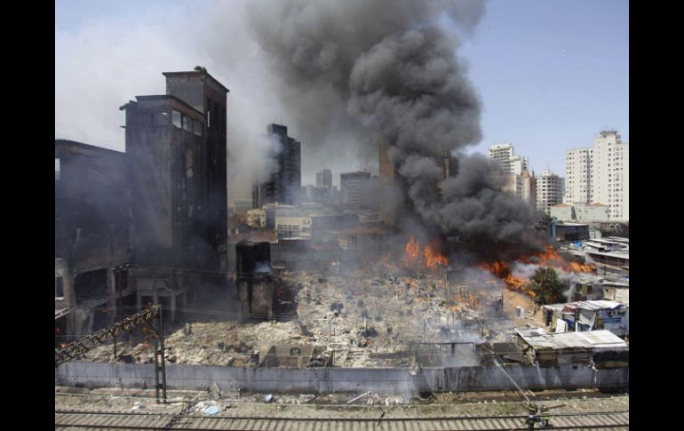 Internacional | Hasta el momento, el saldo es de tres heridos Se registra incendio en favela en el centro de Sao Paulo Unos 120 bomberos y 40 vehículos fueron enviados al lugar a combatir las llamas Por: AFP 22 de diciembre de 2011 - 09:35 hs SAO PAULO, BRASIL (22/DIC/2011).- Un incendio de grandes proporciones se desató en la mañana de este jueves en una favela y en un edificio abandonado en el centro de la metrópoli brasileña de Sao Paulo, informó el cuerpo de bomberos, con un saldo de al menos tres heridos según la prensa local. La televisión Globo difundió imágenes de los bomberos evacuando a personas cercadas por las llamas en una columna de metal levantada por un helicóptero. Una gigantesca cortina de humo se cernía sobre la región de los Campos Elíseos, en el centro de la ciudad. Tres personas fueron evacuadas en ambulancia de la favela do Moinho, donde viven unas dos mil personas en 600 barracas, indicó el diario Folha de Sao Paulo. Las autoridades no han difundido aún un balance oficial de víctimas. Unos 120 bomberos y 40 vehículos fueron enviados al lugar a combatir las llamas, y el comandante de los bomberos Luiz Humberto Navarro dijo a Folha que espera que el fuego esté bajo control en poco tiempo. Dos líneas de tren fueron interrumpidas porque las llamas están cerca de las vías férreas de la Compañía Paulista de Trenes Metropolitanos. Temas América Latina Incendios Brasil Lee También Pipa se vuelca e incendia en Tlaquepaque, colapsa vialidades Bomberos de Guadalajara controlan incendio en Jardines del Sur (VIDEO) Chivas y América empatan en partido amistoso 'Chicharito' marca su primer gol al América en partido amistoso Recibe las últimas noticias en tu e-mail Todo lo que necesitas saber para comenzar tu día Registrarse implica aceptar los Términos y Condiciones