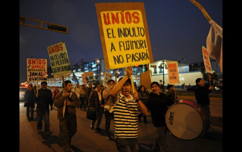 Internacional | La posibilidad de un indulto humanitario a Fujimori generó fuertes debates Se registra manifestación en Lima contra posible indulto a Fujimori Los manifestantes peruanos marcharon para homenajear a los fallecidos y desaparecidos de La Cantatuta, uno de los casos que condenaron al ex mandatario a 25 años de prisión Por: EFE 15 de julio de 2011 - 20:02 hs Un grupo de estudiantes canta arengas contra el expresidente peruano Alberto Fujimori. EFE / LIMA, PERÚ (15/JUL/2011).- Un centenar de personas marcharon hoy en Lima para homenajear a los fallecidos y desaparecidos de "La Cantatuta", uno de los casos por los que el expresidente Alberto Fujimori fue condenado a 25 años de prisión, y exigir que no se indulte al exmandatario. La posibilidad de un indulto humanitario a Fujimori generó un fuerte debate político y social el pasado mes de junio, tras la victoria electoral del nacionalista Ollanta Humala sobre la hija del exmandatario, Keiko Fujimori. Keiko Fujimori anunció esta semana que la familia sopesará la posibilidad de pedir el indulto humanitario una vez estabilizado el estado de salud del expresidente (1990-2000), convaleciente de un cáncer y un reciente cuadro depresivo. Bajo el lema "Ni indulto ni impunidad", familiares de desaparecidos durante el Gobierno fujimorista, colectivos pro derechos humanos, agrupaciones artísticas y activistas recorrieron las céntricas calles de Lima para exigir "justicia" en los casos de violación de derechos humanos, especialmente el de "La Cantuta". El próximo lunes se conmemorará el 19 aniversario del secuestro y matanza por parte de un grupo paramilitar de nueve estudiantes y un profesor de "La Cantuta", nombre con el que se conoce la universidad nacional Enrique Guzmán y Valle, y de los quedan todavía por encontrar los restos mortales de cinco víctimas. El 18 de julio de 1992, los universitarios y el docente fueron sacados de sus dormitorios en el campus por un comando paramilitar, bajo la sospecha de que se trataban de terroristas, y llevados fuera de Lima donde fueron ejecutados y enterrados en fosas. Familiares de las víctimas aseguraron hoy a Efe que conceder el indulto humanitario a Alberto Fujimori sería una "burla" y "lo más vergonzoso" para "un país que tanto luchó por demostrar la culpabilidad" del exmandatario. "Como madre, no estoy de acuerdo (con el eventual indulto humanitario a Fujimori), porque sería una burla, y sobre Fujimori pesa una condena de 25 años", explicó a Efe Raida Cóndor, madre de unos los fallecidos de "La Cantuta". Fue así que al grito de "Ni olvido ni perdono" y "Por justicia y dignidad, Fujimori nunca más", los manifestantes, que también portaban simbólicamente imágenes de la flor de la Cantuta, desembocaron en una céntrica plaza de Lima, donde leyeron un pronunciamiento. Con la lectura del manifiesto, quisieron seguir "recordando" a los fallecidos y desaparecidos de La Cantuta y otros casos para no "desterrarlos en el olvido". Los manifestantes reclamaron el derecho a "saber qué pasó", "recuperar" los restos mortales de cinco de los secuestrados" y a ser reparados por los daños derivados de las muertes y desapariciones de sus hijos. Esta misma semana una sala de la Corte Suprema de Justicia confirmó la condena a seis años de cárcel impuesta a Alberto Fujimori por la irregular compra de medios de comunicación, soborno a congresistas y espionaje telefónico. Además de esta pena y de la de los crímenes de lesa humanidad, sobre Fujimori pesa una condena de seis años de prisión por allanamiento de morada y otra de siete años y seis meses por haber pagado 15 millones de dólares a su brazo derecho Vladimiro Montesinos. Temas América Latina Manifestaciones en el mundo Alberto Fujimori Lee También Chivas y América empatan en partido amistoso 'Chicharito' marca su primer gol al América en partido amistoso "Chucky" Lozano reconoce que jugaría en Chivas o en América ¿Quién ganará el partido entre las América y Chivas? Esto dice la IA Recibe las últimas noticias en tu e-mail Todo lo que necesitas saber para comenzar tu día Registrarse implica aceptar los Términos y Condiciones