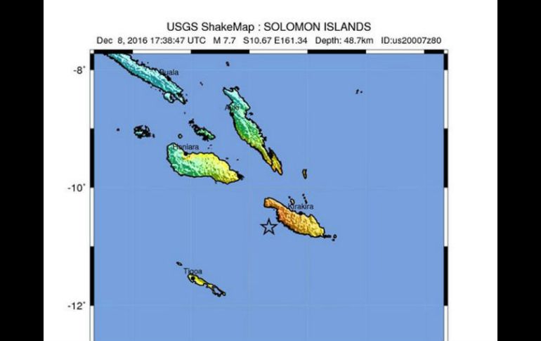 WELLINGTON, NUEVA ZELANDA (09/DIC/2016).- Centenares de personas que viven en zonas remotas de las islas Salomón sufrieron daños en sus casas o la destrucción de sus viviendas debido a un poderoso sismo de magnitud 7.7 que sacudió el viernes la región, dijo un grupo de asistencia.No se informó de fallecidos por el movimiento telúrico, que además causó algunos pequeños tsunamis en las Islas Salomón y otras zonas del Pacífico.En declaraciones vertidas desde la capital, Honiara, Suzy Sainovski, portavoz para Timor Oriental y el Pacífico de la organización World Vision, dijo que ha sido difícil tener una valoración completa de comunidades más distantes, en algunas de las cuales no hay telefonía celular."Según informaciones iniciales, 3 mil personas fueron afectadas", declaró Sainovski. "Algunas de las viviendas son del tipo tradicional construidas sobre zancos y con vegetación".El temblor ocurrió cerca de la isla de Makira. Sainovski señaló que en la ciudad de Kirakira, capital de Makira, el sismo causó daños a un hospital, una iglesia y otros inmuebles, entre ellos en el que se encuentra la oficina de World Vision. La portavoz dijo que 20 personas fueron desalojadas de un hospital.Afirmó que el temblor causó algunas interrupciones en el suministro de electricidad en todo el país. Micha Maghe, coordinadora del proyecto de World Vision para saneamiento de agua y salud en Kirakira, dijo que el temblor fue terrible."Cuando salí escuché a niños que lloraban y personas que gritaban", afirmó Maghe en un comunicado. "Nos reunimos en una escuela y vi a personas que se dirigían a terreno más alto... La gente era presa del pánico y tenía miedo".Sainovski dijo que hubo después varias réplicas y otras interrupciones en la electricidad. Las alertas de tsunami para varias islas del Pacífico, entre ellas Hawaii, fueron canceladas el viernes después de que las autoridades determinaran que no había peligro de olas gigantes por el sismo.La región fue sacudida después por una réplica de magnitud 6.9. El Servicio Geológico de Estados Unidos dijo que el movimiento telúrico ocurrió a unos 200 kilómetros al sureste de Honiara y a unos 60 kilómetros de Kirakira. El epicentro fue relativamente profundo, 48 kilómetros debajo de la superficie. Los sismos más profundos causan menos daños en la superficie.Las Islas Salomón se ubican en la zona de intensa actividad sísmica conocida como Cinturón de Fuego del Pacífico.
