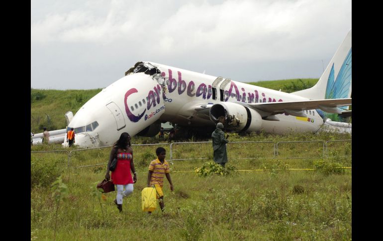 Internacional | El incidente provocó el cierre temporal del aeropuerto Sobreviven 163 personas a accidente aéreo en Guyana Pese a que un avión de Caribbean Airlines, se salió de la pista y se partió en dos al aterrizar no se registraron muertes Por: NTX 30 de julio de 2011 - 13:15 hs El fuselaje roto del Boeing Caribbean Airlines se ve después del accidente. AP / CARACAS, VENEZUELA (30/JUL/2011).- Un avión de Caribbean Airlines, con 163 personas abordo, se salió de la pista y se partió en dos al aterrizar hoy en el aeropuerto de Georgetown, capital de Guyana, causando decenas de heridos pero sin que se reportaran decesos. El accidente ocurrió cuando la aeronave, un Boeing 737-800 que procedía de Nueva York, aterrizaba en el aeropuerto internacional Cheddi Jagan, en Georgetown, y sobrepasó la pista, en medio de pésimas condiciones climáticas. Al parecer la espesa niebla y la fuerte lluvia que se registraba en ese momento obstaculizaron la visión de los pilotos, reportó el diario local Guyana Chronicle. En el avión, que cubría el vuelo BW-523 con una escala en Trinidad, viajaban 157 pasajeros y seis miembros de la tripulación, y todos sobrevivieron al accidente, que provocó el cierre temporal del aeropuerto. El presidente de Guyana, Bharrat Jagdeo, declaró a la prensa que por fortuna el avión se detuvo a unos 61 metros de un barranco, pues pudo haber caído y causar decenas de muertos. Temas América Latina Accidentes en el mundo Aeropuertos Lee También Reportan carambola en autopista a Morelia Muere conductor tras choque entre camioneta y camión en Arandas Conmociones cerebrales, la cuarta lesión más frecuente en partidos de la Conmebol Chivas y América empatan en partido amistoso Recibe las últimas noticias en tu e-mail Todo lo que necesitas saber para comenzar tu día Registrarse implica aceptar los Términos y Condiciones