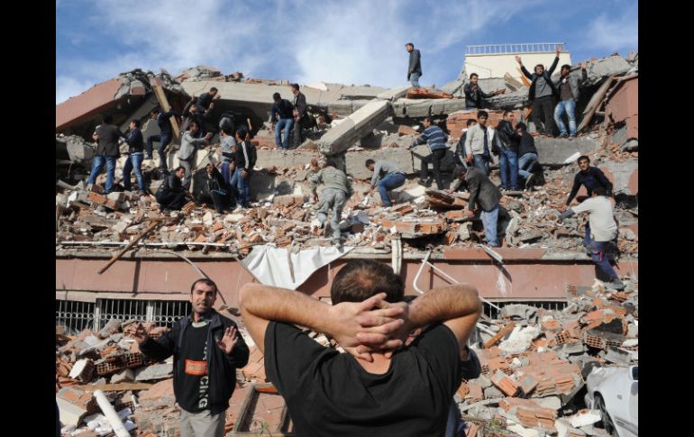 Internacional | Decenas de edificios que quedaron reducidos a pilas de escombros y metal retorcido Suman 138 muertos por sismo en Turquía Decenas de edificios que quedaron reducidos a pilas de escombros y metal retorcido Por: AP 23 de octubre de 2011 - 19:21 hs ANKARA, TURQUÍA (23/OCT/2011).- Un terremoto de magnitud 7.2 que sacudió el domingo el este de Turquía ha causado por lo menos 138 muertes y desatado escenas de pánico debido al derrumbe de decenas de edificios que quedaron reducidos a pilas de escombros y metal retorcido. Se espera que el saldo de muertos aumente a medida que los socorristas busquen entre los escombros y lleguen hasta las villas más alejadas. Durante el movimiento tectónico, decenas de miles de habitantes corrieron hacia las calles mientras gritaban e intentaban comunicarse por celular con sus parientes. En medio de la destrucción, los sobrevivientes utilizaron sus manos como palas en un intento desesperado por rescatar a personas que quedaron atrapadas o heridas bajo los escombros. "Mi esposa e hijo están dentro. Mi hijo de cuatro meses está dentro", decía un hombre que lloraba afuera de un edificio derrumbado en Van, la capital provincial, según imágenes del canal CNN-Turk. El temblor remeció a las 13:41 horas (1041 GMT) la región oriental montañosa de Turquía y el epicentro ocurrió en la aldea de Tabanli, a 17 kilómetros de Van, según el Servicio Geológico de Estados Unidos. El primer ministro Recep Tayyip Erdogan informó que al menos 93 perecieron en Van, en tanto que otras 45 murieron en Ercis, y 350 más resultaron heridas. Muchas personas seguían atrapadas bajo los escombros, agregó, sin mencionar ningún cifra. Erdogan dijo que las operaciones de rescate continuarán a lo largo de la noche. Los expertos turcos afirmaron que las víctimas fatales podrían ascender a más de mil debido a las normas deficientes de construcción y la potencia del sismo en la región. El temblor causó sus mayores estragos en Ercis, de 75 mil habitantes, cerca de la frontera con Irán. La ciudad se ubica en la falla geológica de Ercis, en una de las zonas más propensas a sismos en Turquía. Van, 90 kilómetros al sur, también tuvo daños considerables. Hasta 80 edificios se derrumbaron en Ercis, entre ellos un dormitorio, y 10 edificios corrieron igual suerte en Van, dijo la Media Luna Roja (la cruz roja turca). El sismo causó hundimientos en carreteras, dijo el canal CNN-Turk. Erdogan instó a los residentes a mantenerse alejados de los edificios afectados y prometió asistencia a todos los sobrevivientes. "No dejaremos que nadie se las tenga que arreglar por sí mismo en el frío del invierno", señaló. De acuerdo con el canal NTV, cientos de heridos recibieron atención en el hospital estatal en Ercis. Los sobrevivientes en Ercis se quejaban de la falta de maquinaria pesada para retirar enormes planchas de cemento que estaban encimadas, según la NTV. "Hay numerosos muertos. Varios edificios se vinieron abajo. Hay mucha destrucción", dijo a la televisión NTV el alcalde de Ercis, Zulfikar Arapoglu. "Necesitamos asistencia urgente. Necesitamos médicos". En Van, residentes llenaron las calles presas del pánico entre gritos. Socorristas y voluntarios maniobraban a toda prisa con sus manos y palas para salvar a los que estaban atrapados. Los lugareños lloraban afuera de las ruinas de lo que fue un edificio de ocho niveles con la esperanza de que fueran rescatados sus parientes. Los científicos estadounidenses registraron un centenar de réplicas en el este del país a 10 horas del sismo, incluyendo una de magnitud 6.0. Numerosas víctimas y daños graves ocurrieron en el distrito de Celebibag, cerca de Ercis. "Hay muchas personas atrapadas bajo los escombros", aseguró el alcalde de Celebibag, Veysel Kesser, en declaraciones a la NTV. "Hay gente que agoniza, escuchamos sus gritos en demanda de auxilio. Necesitamos asistencia urgente". Dijo que diversos inmuebles se han derrumbado, entre ellos dormitorios de estudiantes, hoteles y gasolineras. Nazmi Gur, legislador de Van, asistía al funeral de un sobrino cuando ocurrió el movimiento telúrico. El funeral fue abreviado y el legislador se sumó a las acciones de rescate. "Al menos seis inmuebles se vinieron abajo. Logramos rescatar a algunas personas, pero vi cuando menos cinco cadáveres", expresó Gur por teléfono a The Associated Press. "Por el momento las acciones de rescate carecen de coordinación, todo mundo hace lo que puede". "El temblor fue muy poderoso. Duró bastante", dijo Gur. "(Ahora) no ha electricidad, no hay calefacción, todos pasan frío al aire libre". Numerosos residentes huyeron de Van en busca de refugio con sus parientes en las aldeas próximas. "Me llevo a mi familia a nuestra aldea, nuestra casa está bien pero hubo grietas en nuestro edificio de oficinas", dijo Sahabettin Ozer, de 47 años y quien conducirá hasta la aldea de Muradiya. La NTV dijo que el aeropuerto de Van tuvo daños y los aviones fueron desviados a ciudades cercanas. Las autoridades carecían de información sobre las secuelas del sismo en las aldeas remotas pero el gobernador recorría la región en helicóptero. El gobierno envió carpas, cocinas de campo y mantas. Algunas personas en Ercis dijeron que había escasez de pan, el alimento básico de Turquía, debido a daños en las panaderías. Turquía se ubica en una de las zonas más sísmicas del mundo y la cruzan numerosas fallas geológicas. El lago Van, donde ocurrió el sismo, es la región más propensa a movimientos telúricos en el país. El observatorio Kandilli, el principal centro sismológico de Turquía, dijo el domingo que el temblor tuvo la magnitud como para causar numerosos muertos. "Calculamos la cifra de víctimas fatales entre 500 y mil", expresó Mustafa Erdik, jefe del observatorio Kandilli, en conferencia de prensa televisada. El sismo también remeció edificios en los países vecinos de Armenia e Irán sin que se informa